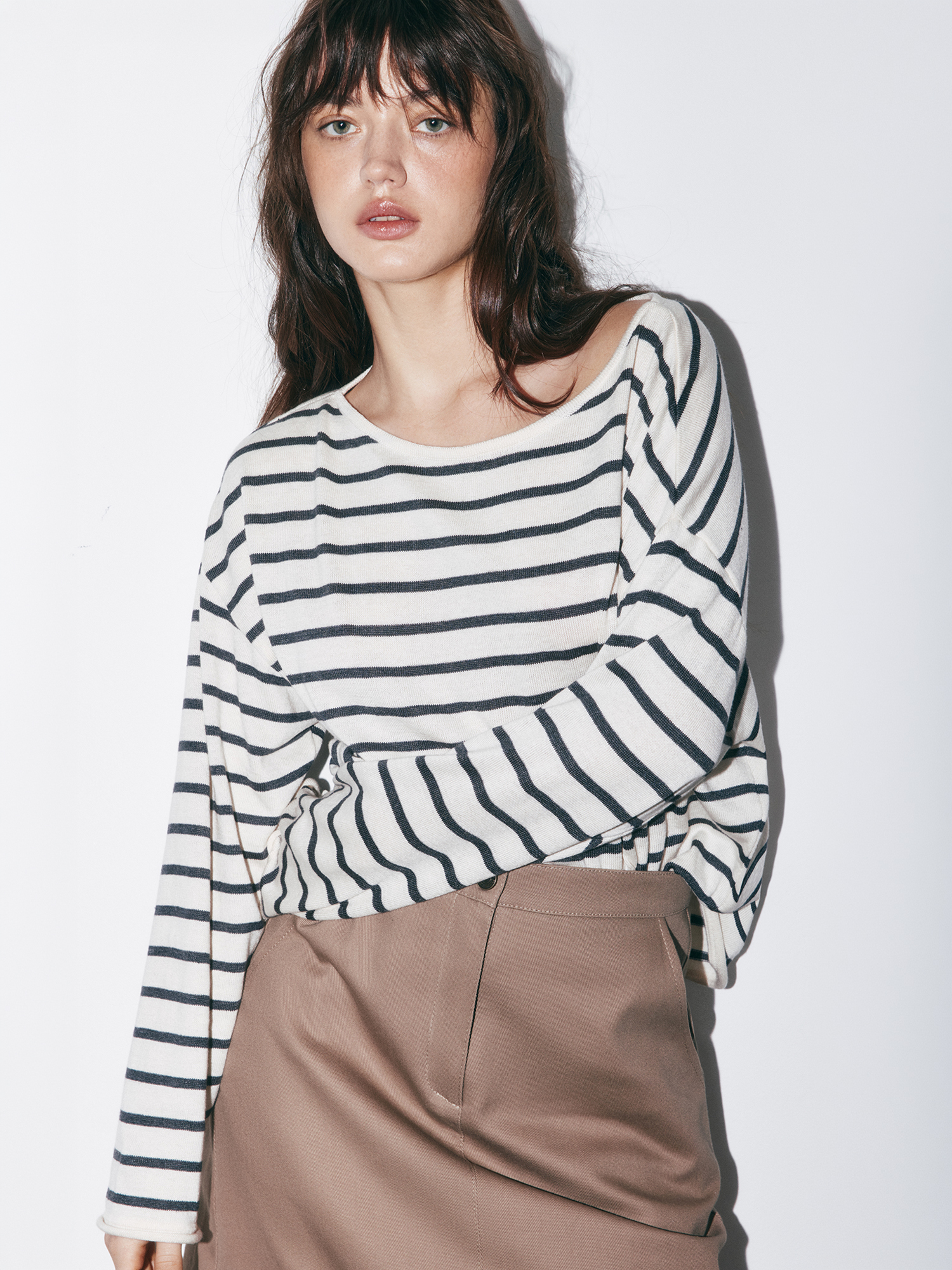 Лёгкий, очень комфортный джемпер, он вязаный и поэтому красиво смотрится текстура. На 44 размер S свободный, но с плеч не сваливается. Цвет полосок не яркий, в глазах не рябит, подходит и к джинсами и боюкам. Самая любимая вещь теперь в гардеробе.