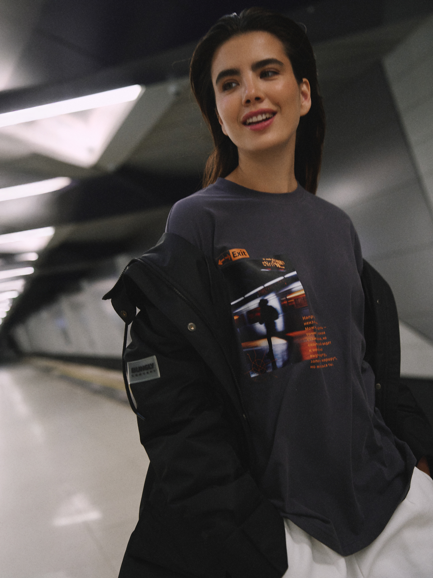 Лаконичный принт спереди нанесен методом шелкографии – не бледнеет и не трескается (при соблюдении рекомендаций по уходу).