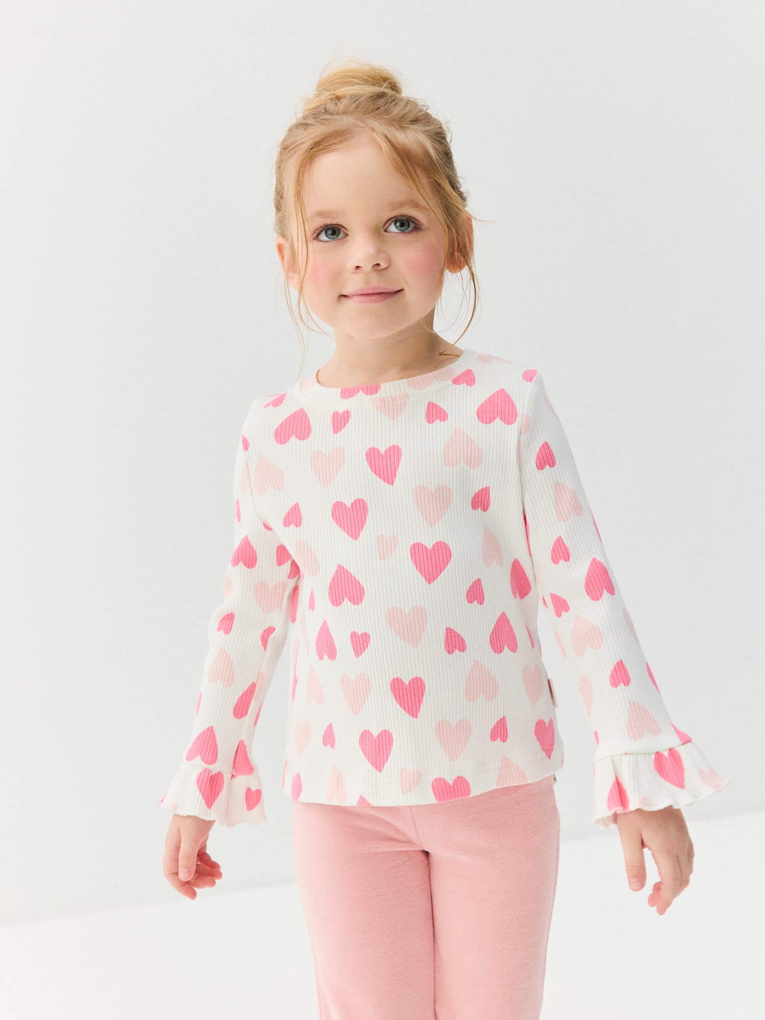 Комфортный лонгслив с милыми сердечками для очаровательных образов.