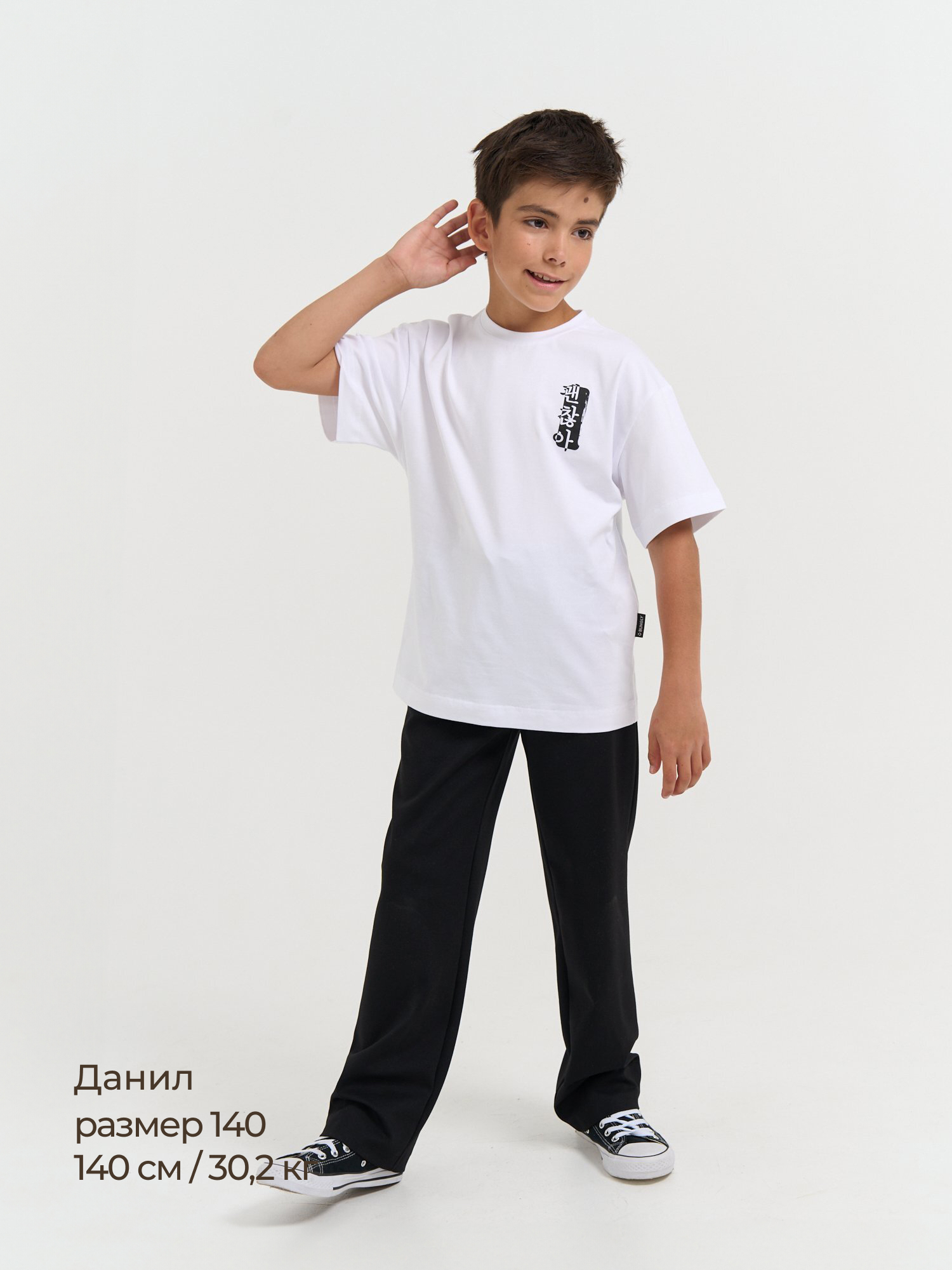 Отличная футболка на физкультуру. Хорошо сидит размер 170 на очень стройном ребенке 175 см ростом и весом 50 кг. Ну и надпись очень элегантная, не бросается в глаза, но очень украшает.