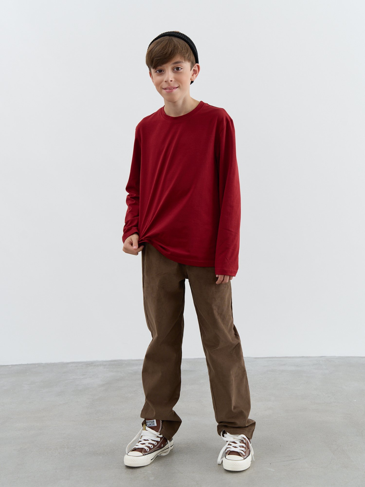 Круглая горловина комфортно прилегает и не деформируется после стирок.