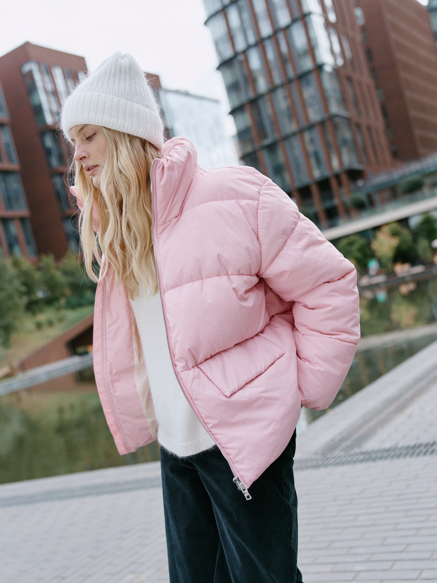 Легко сочетается с пальто, пуховиком, курткой или трикотажным костюмом.