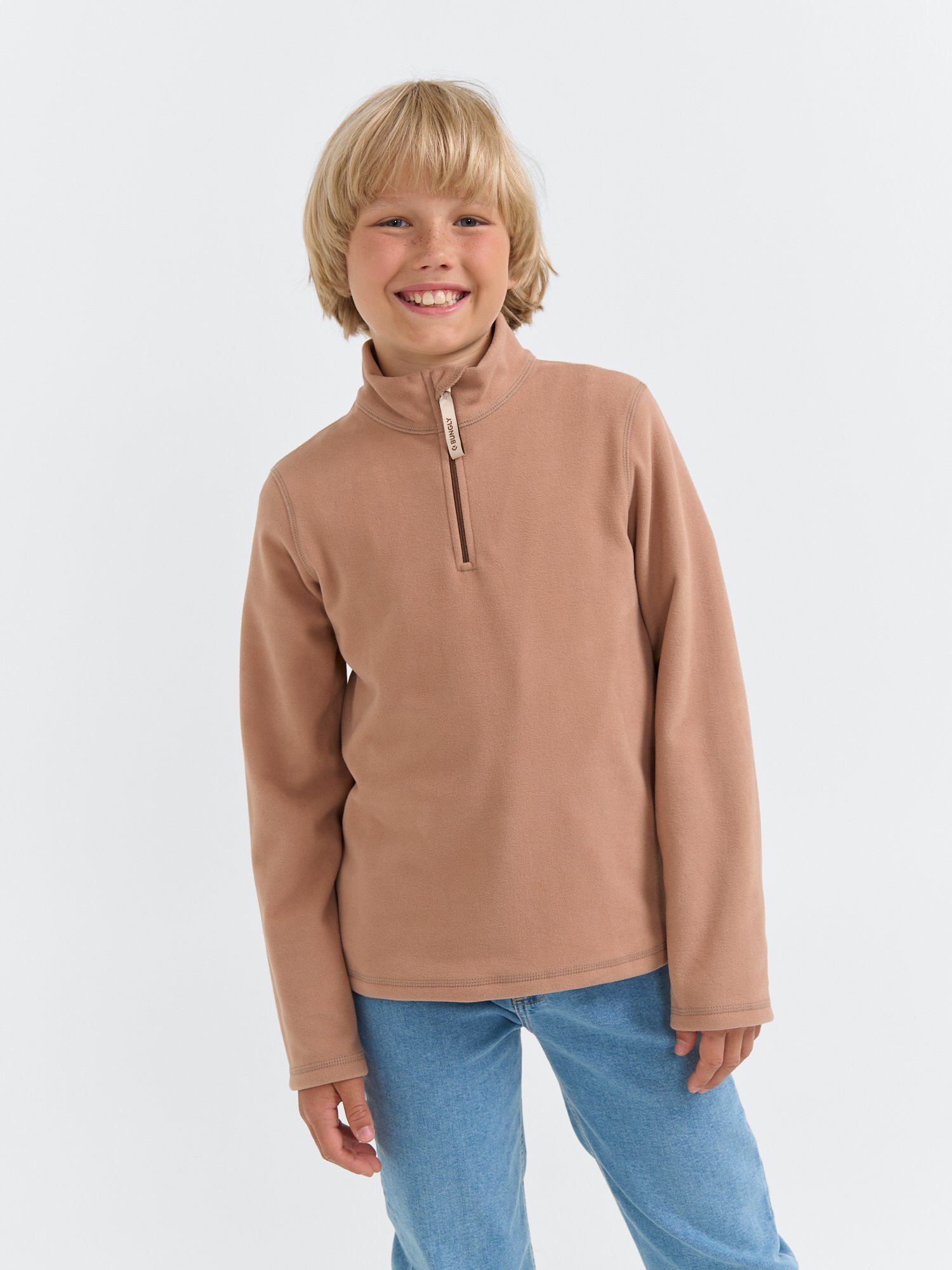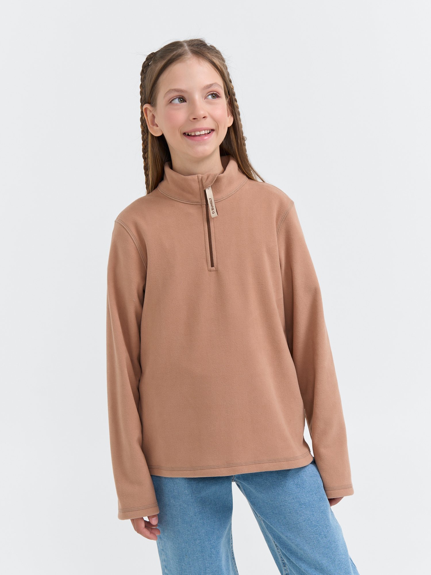 Короткая застежка-молния позволяет регулировать тепло: застегните для защиты от ветра на площадке или расстегните для комфорта в помещении.