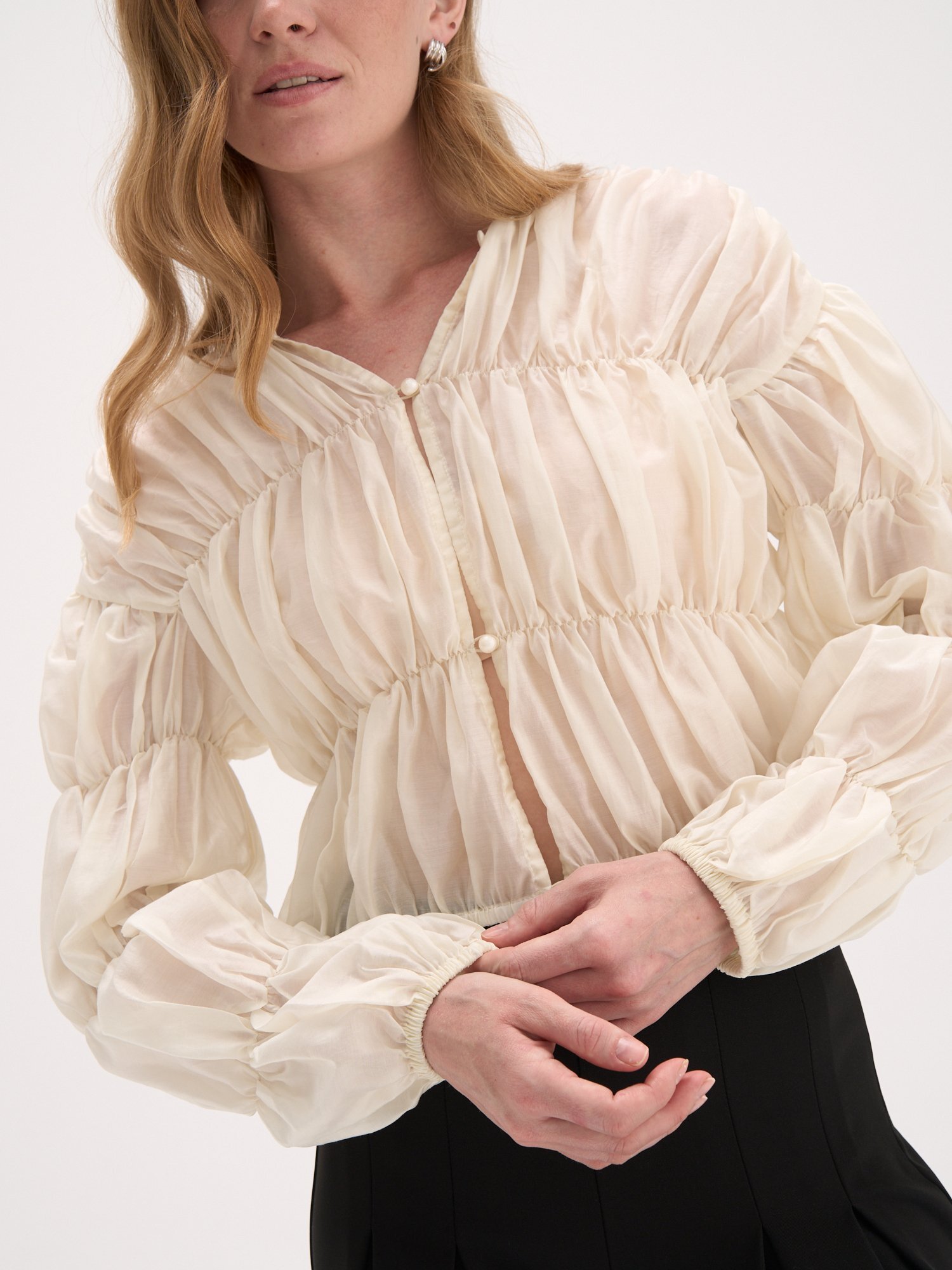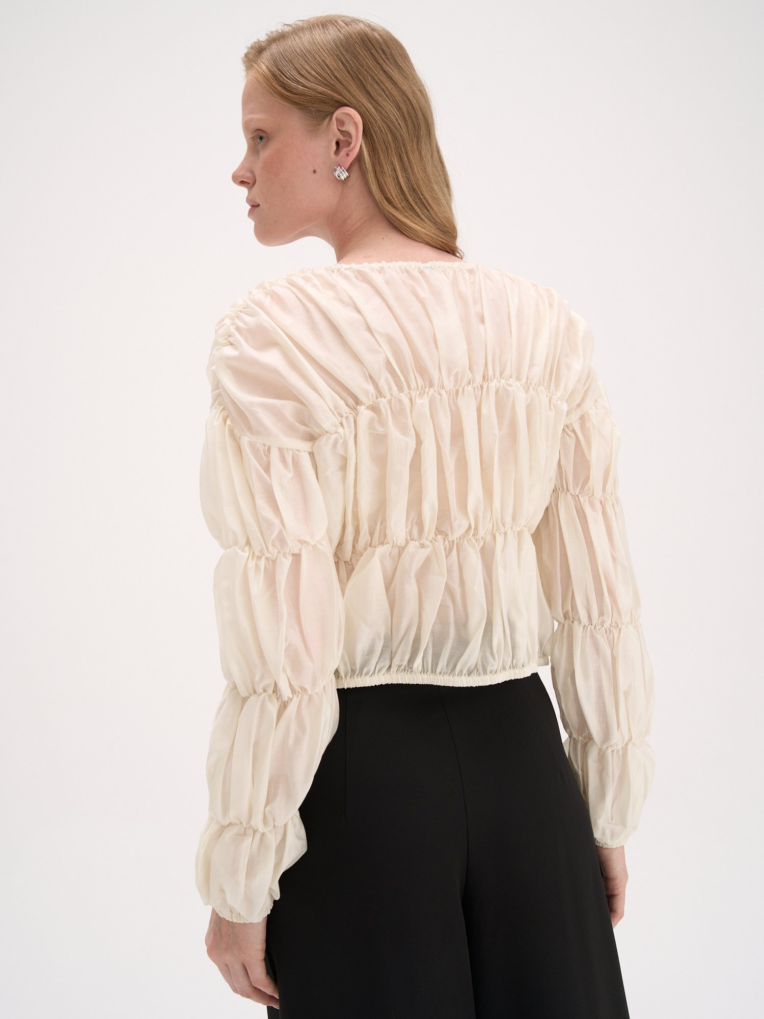 Укороченный силуэт и полупрозрачная фактура.