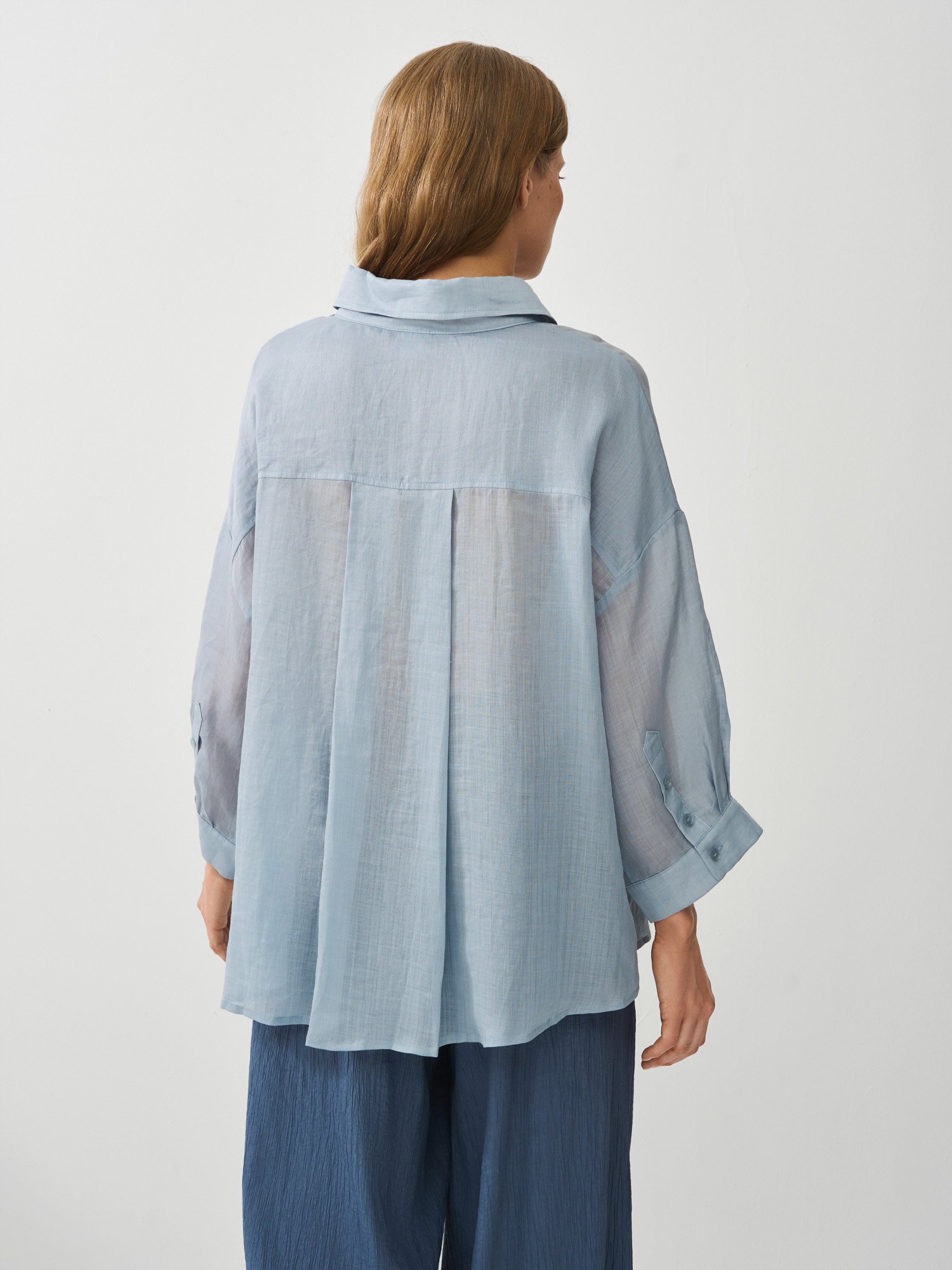 Фигурный низ с удлиненной спинкой и глубокими боковыми разрезами позволяют удобно заправлять рубашку, носить её навыпуск или создавать многослойные образы с топами и майками.