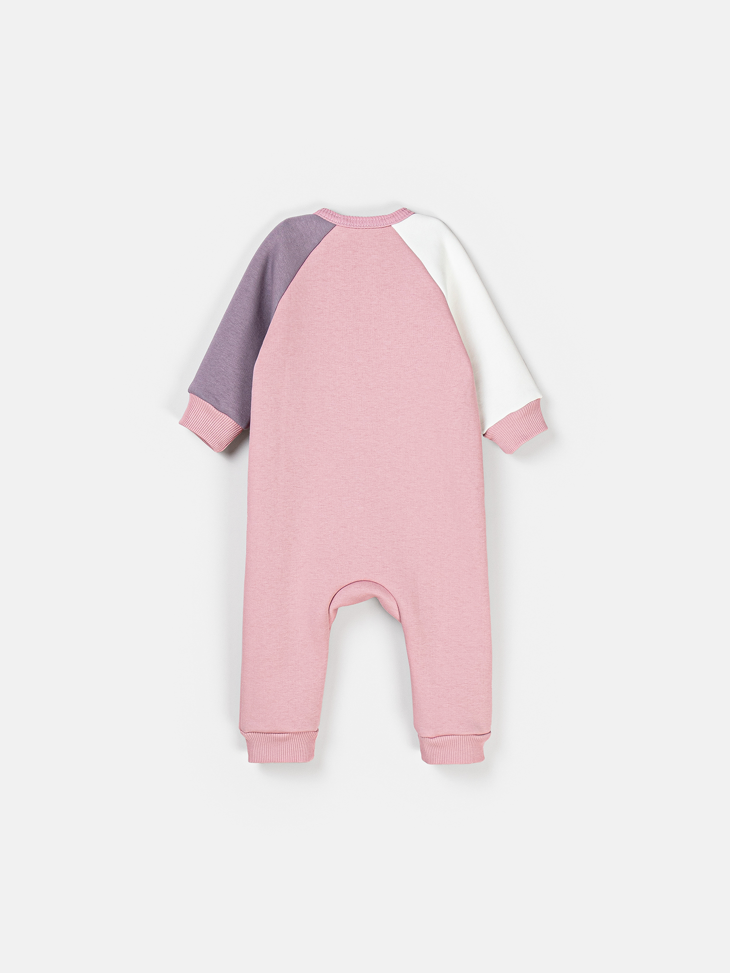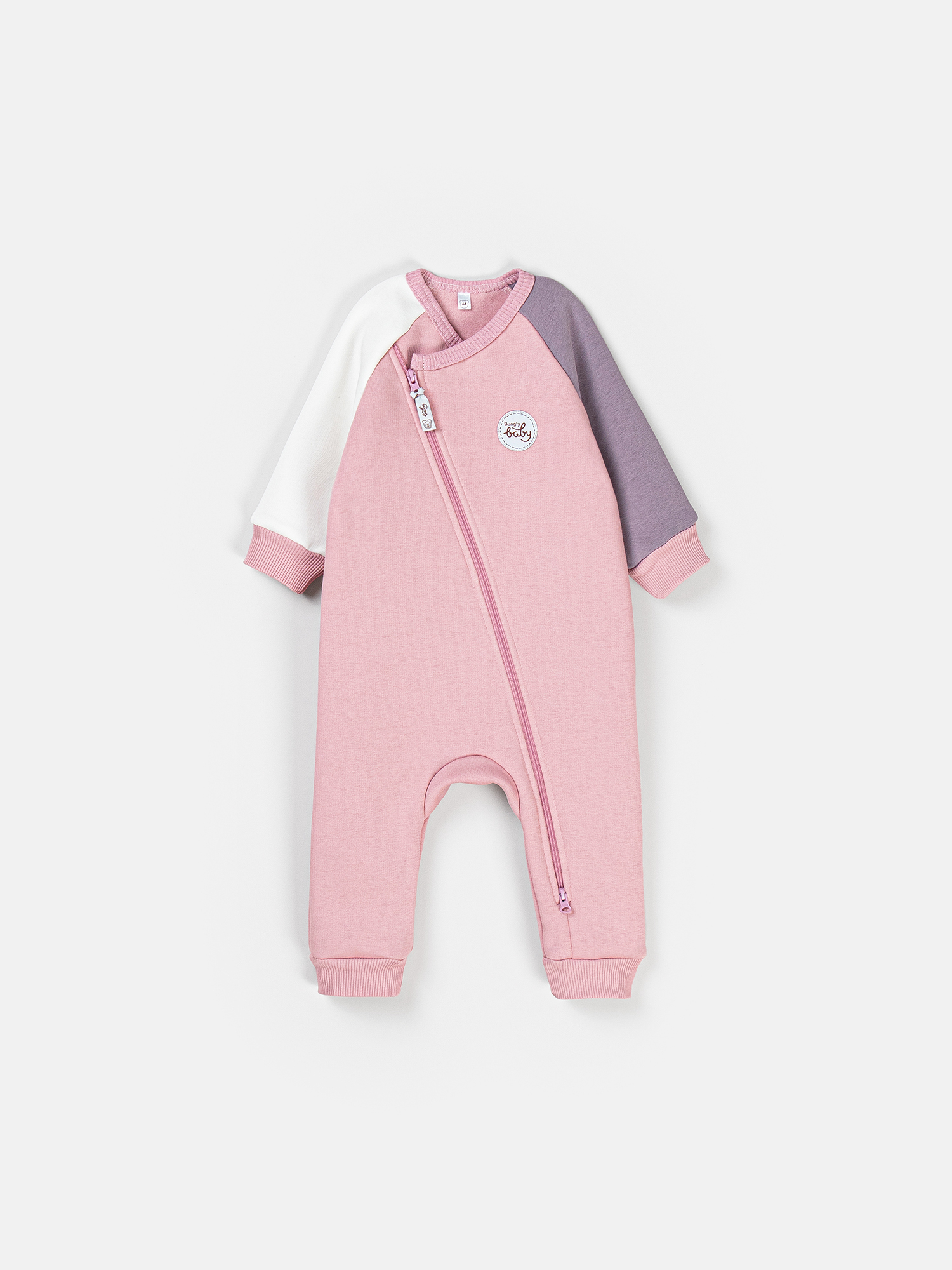 Комбинезон-косуха в стиле колор-блок из облегчённого футера с начёсом – удобный и яркий вариант для активных малышей.
