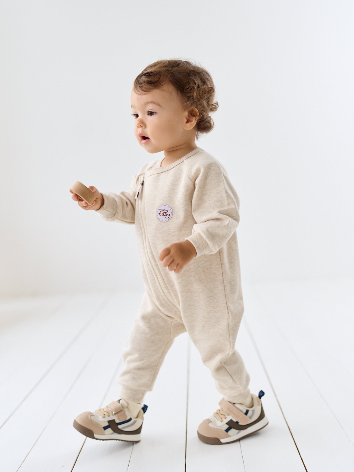 Благодаря продуманному крою комбинезон не сковывает движения малыша.