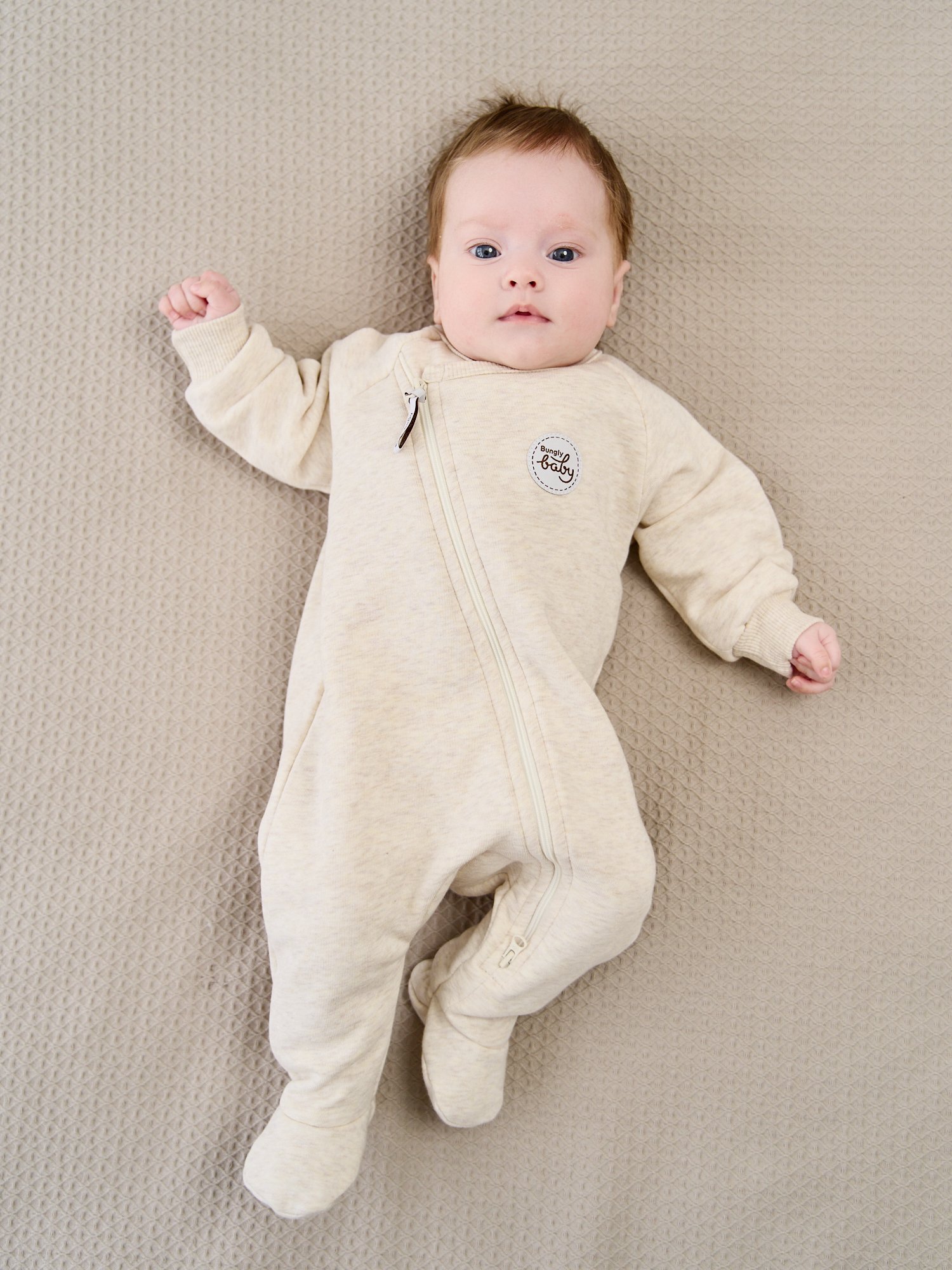 Асимметричная молния и двойной бегунок облегчают процесс переодевания ребенка и смену подгузника. Двойной слой ткани на груди дополнительно защищает от холода.