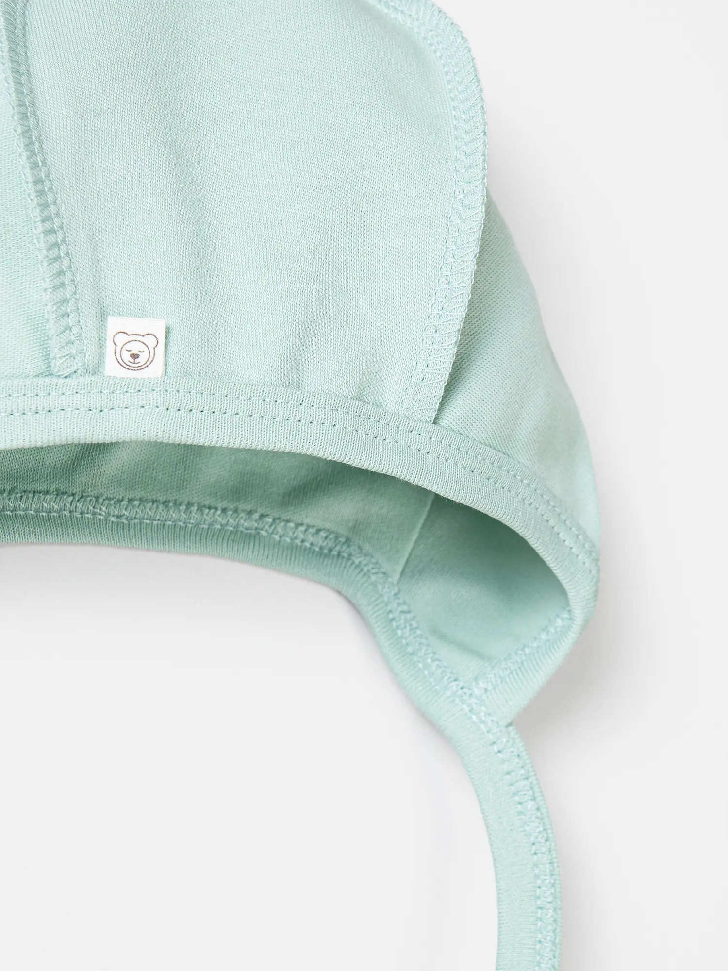 Удобный чепчик заостренной формы нежно облегает голову и прикрывает ушки, а мягкие завязки надежно фиксируют его.