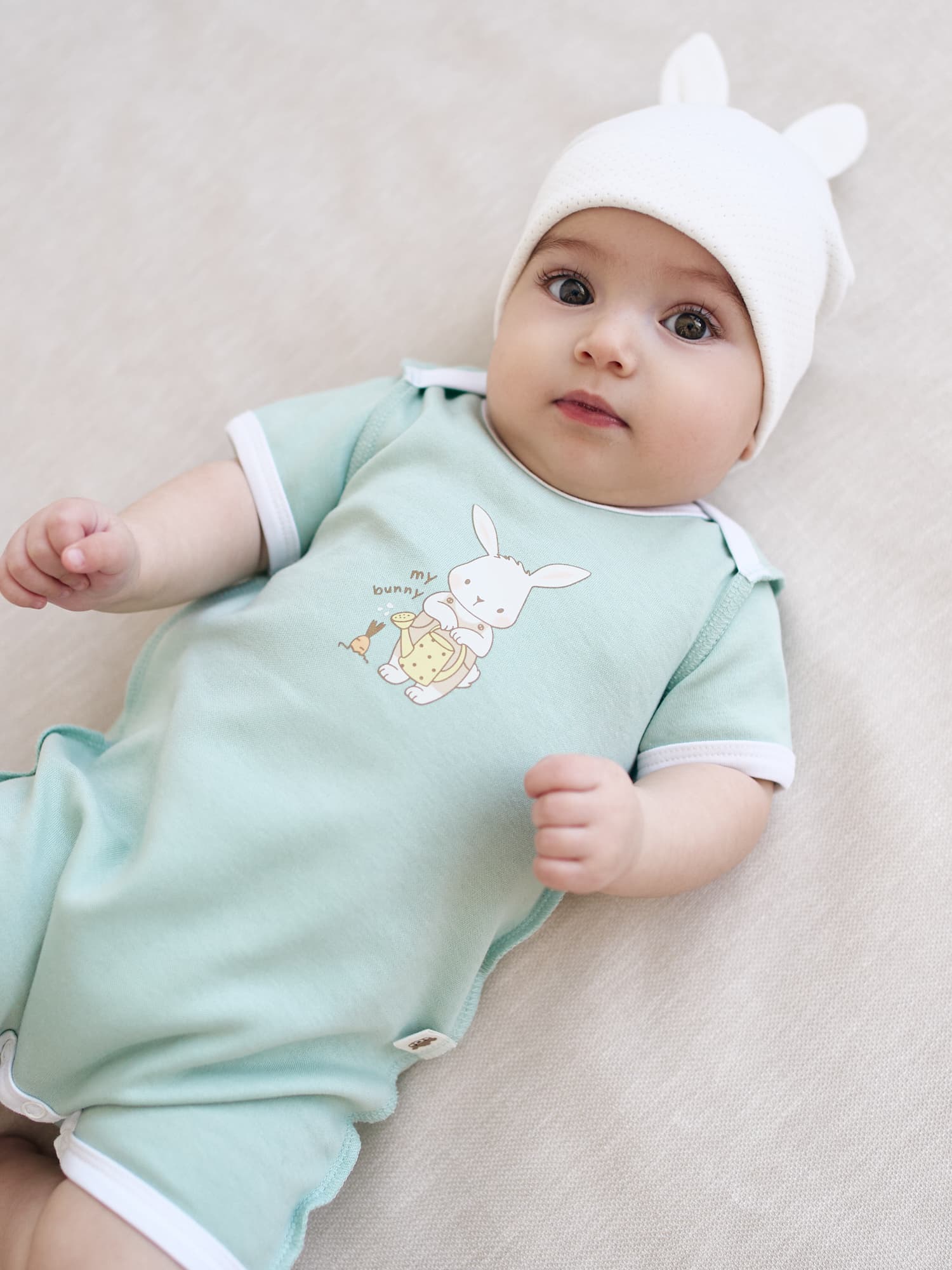 Песочник с милым и стойким принтом — удобный и красивый вариант для малышей.
