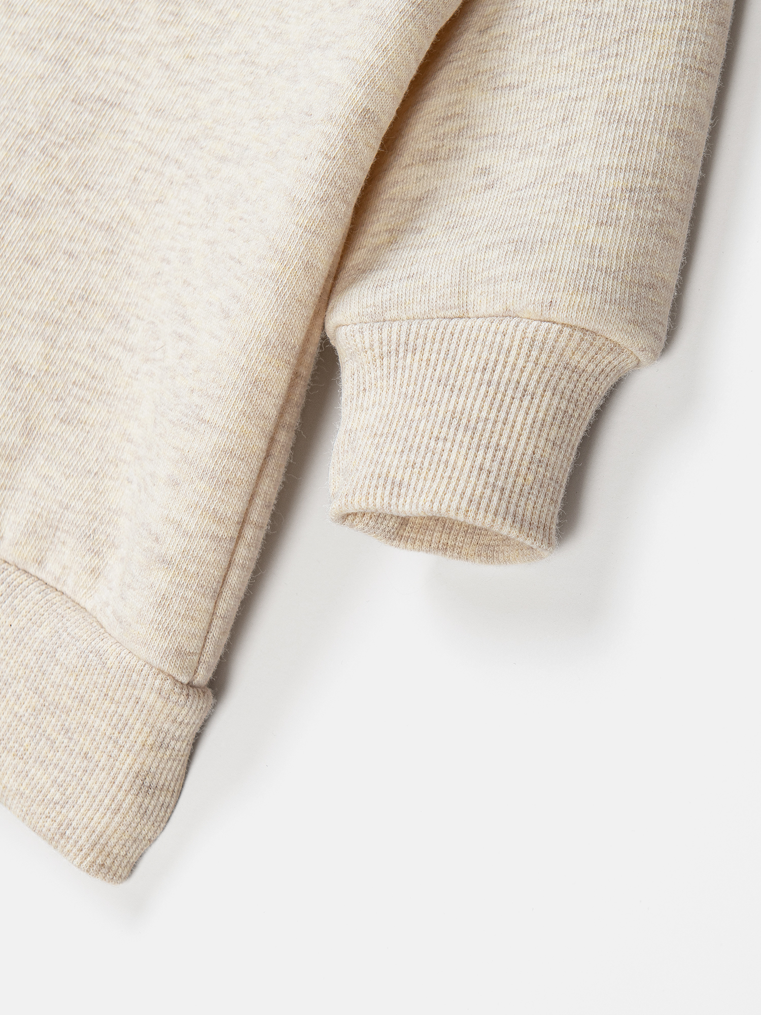 Эластичный пояс по низу из кашкорсе помогает толстовке хорошо сидеть даже во время активных игр.