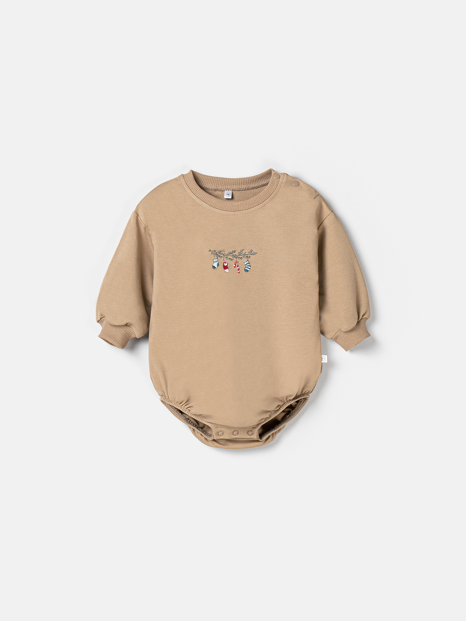Застёжка на кнопках в плечевом шве и низу позволяют быстро переодеть малыша или заменить подгузник полностью, не раздеваясь.