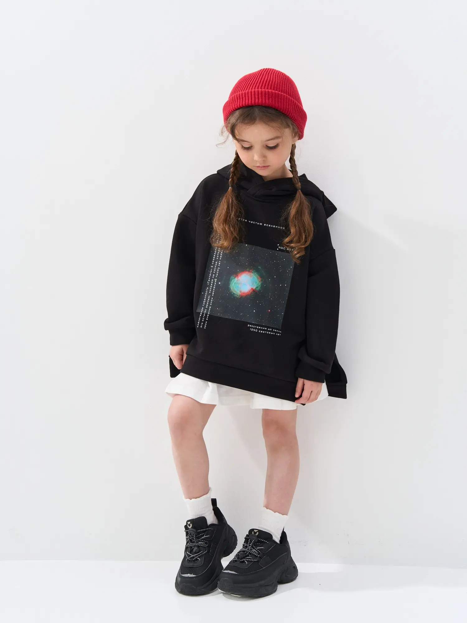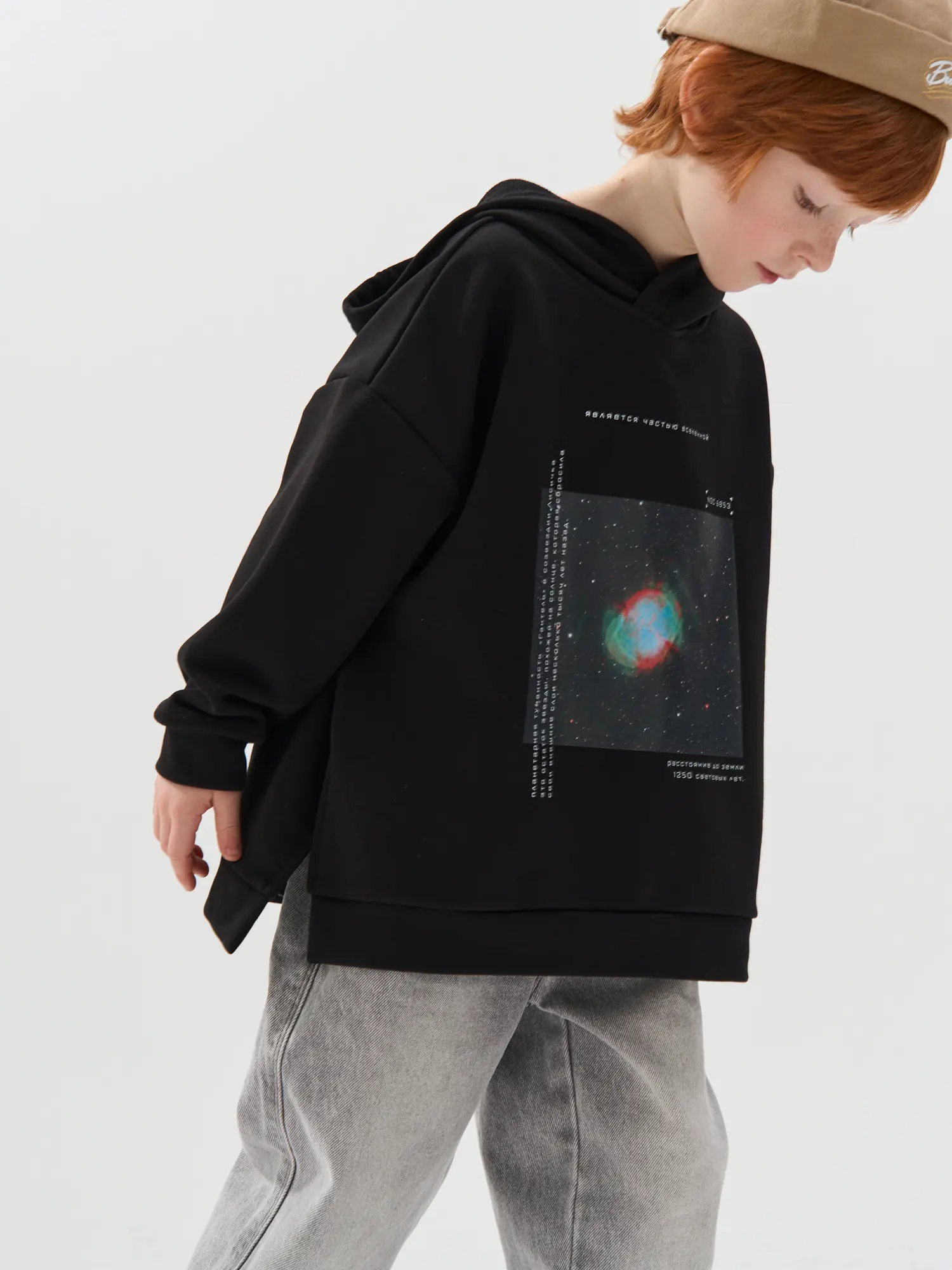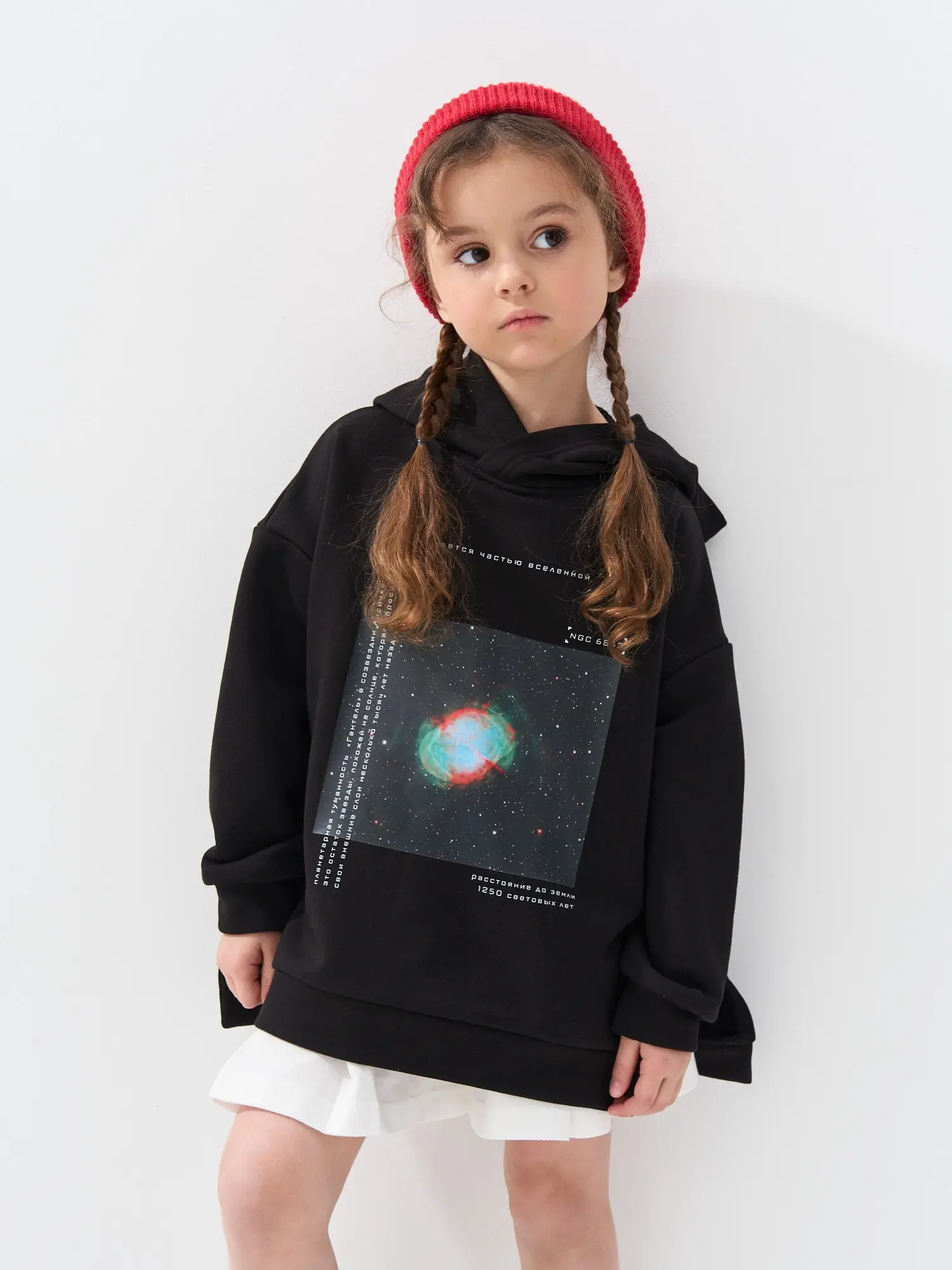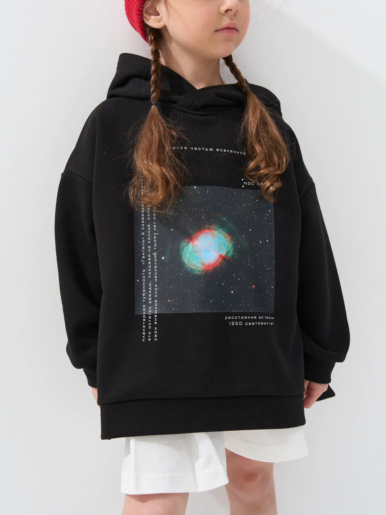 Худи с уникальным межгалактическим принтом — в основе дизайна лежат реальные снимки космоса — результат многомесячного труда ученых: на создание одной такой фотографии уходит до 4 месяцев.