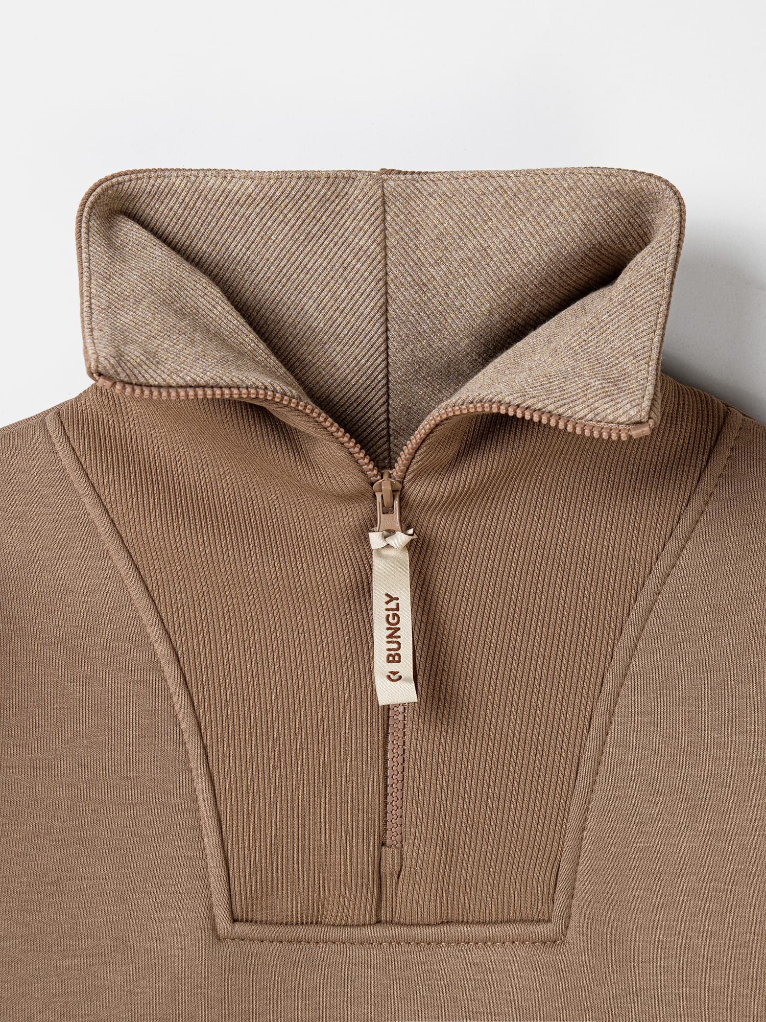Высокая стойка-воротник мягко прилегает к шее и защищает от прохлады, а удобная молния спереди позволяет легко надевать и снимать вещь.