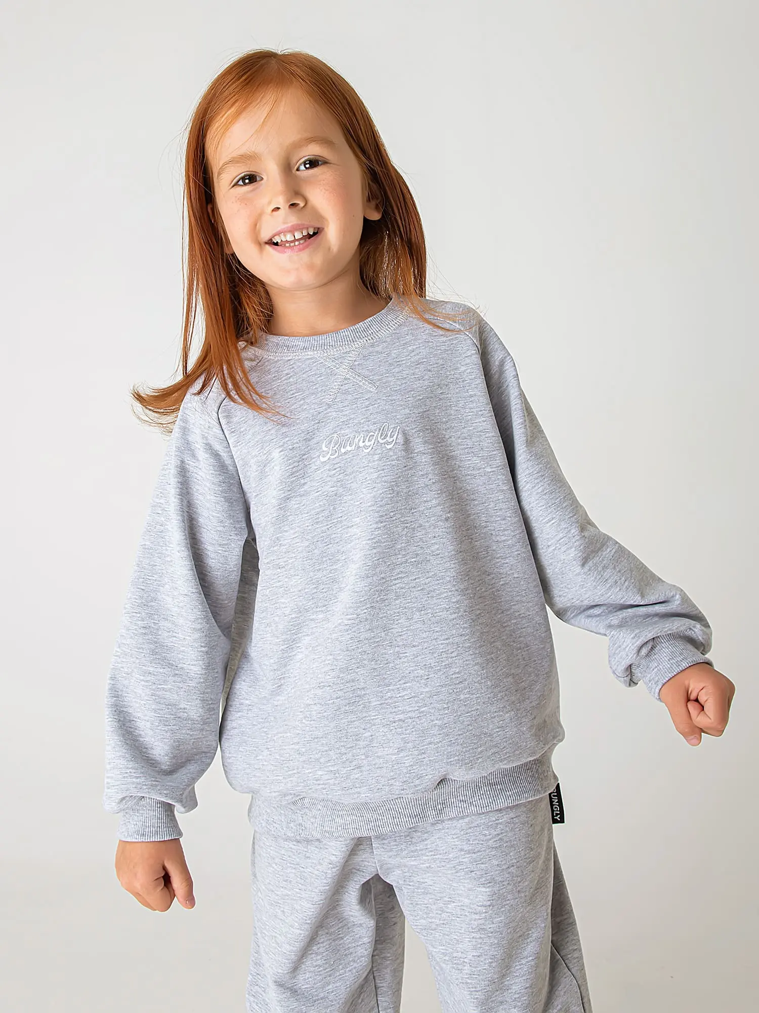 Красивый свитшот, легкий, качественный пошив , очень комфортный. После стирки вид не меняет . На рост 109 взяли 110 , смотрится красиво с запасом легкий овер. Взяли с брючками как костюм. Благодарю за красивые и качественные вещи для деток.