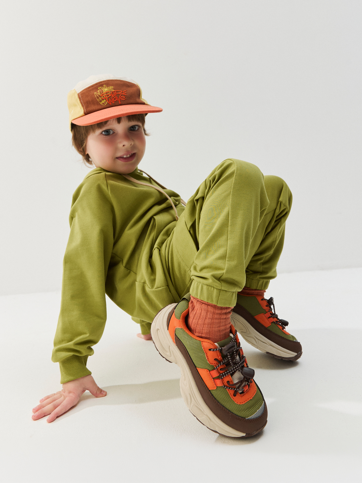 Двойная шнуровка на эластичные шнурки. Верхний шнур с фиксатором для дополнительной регулировки по ноге.