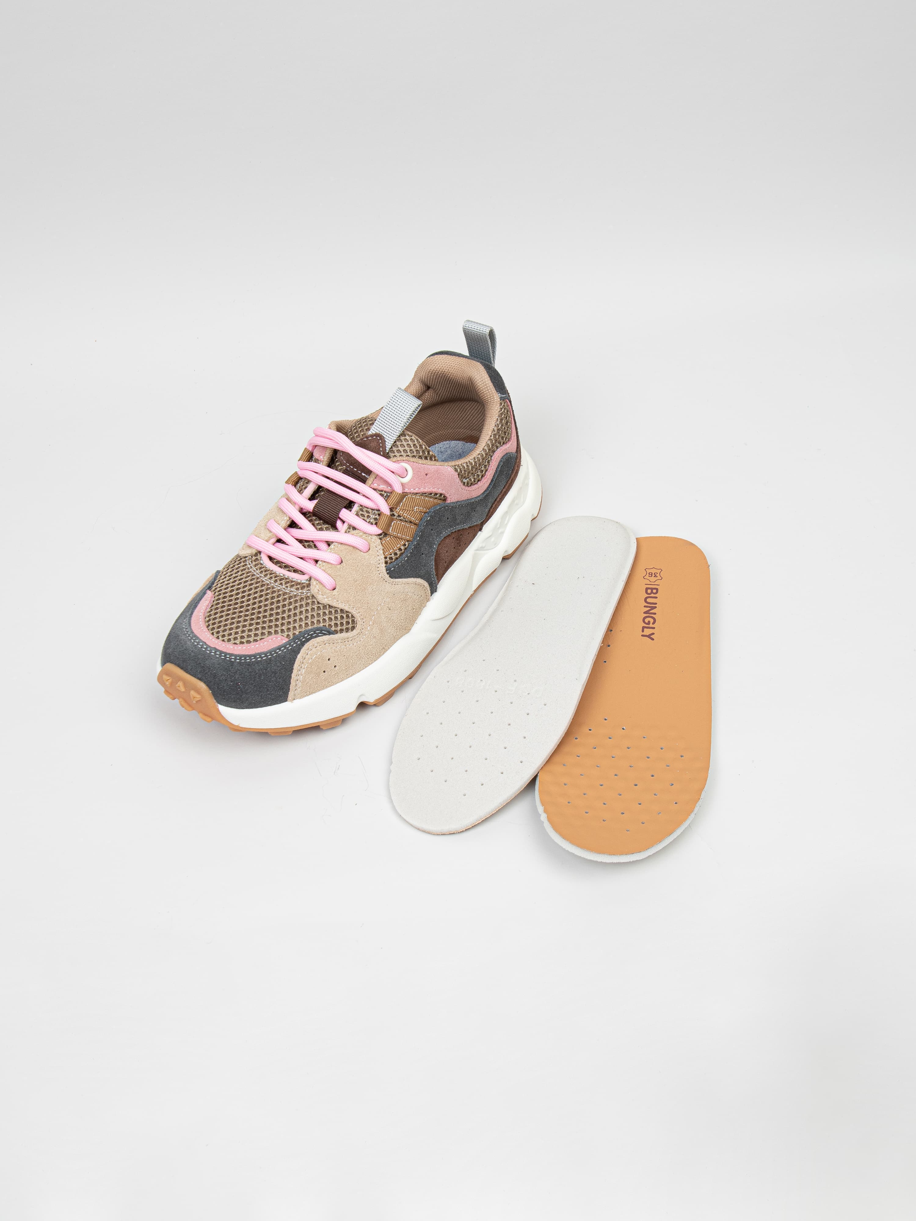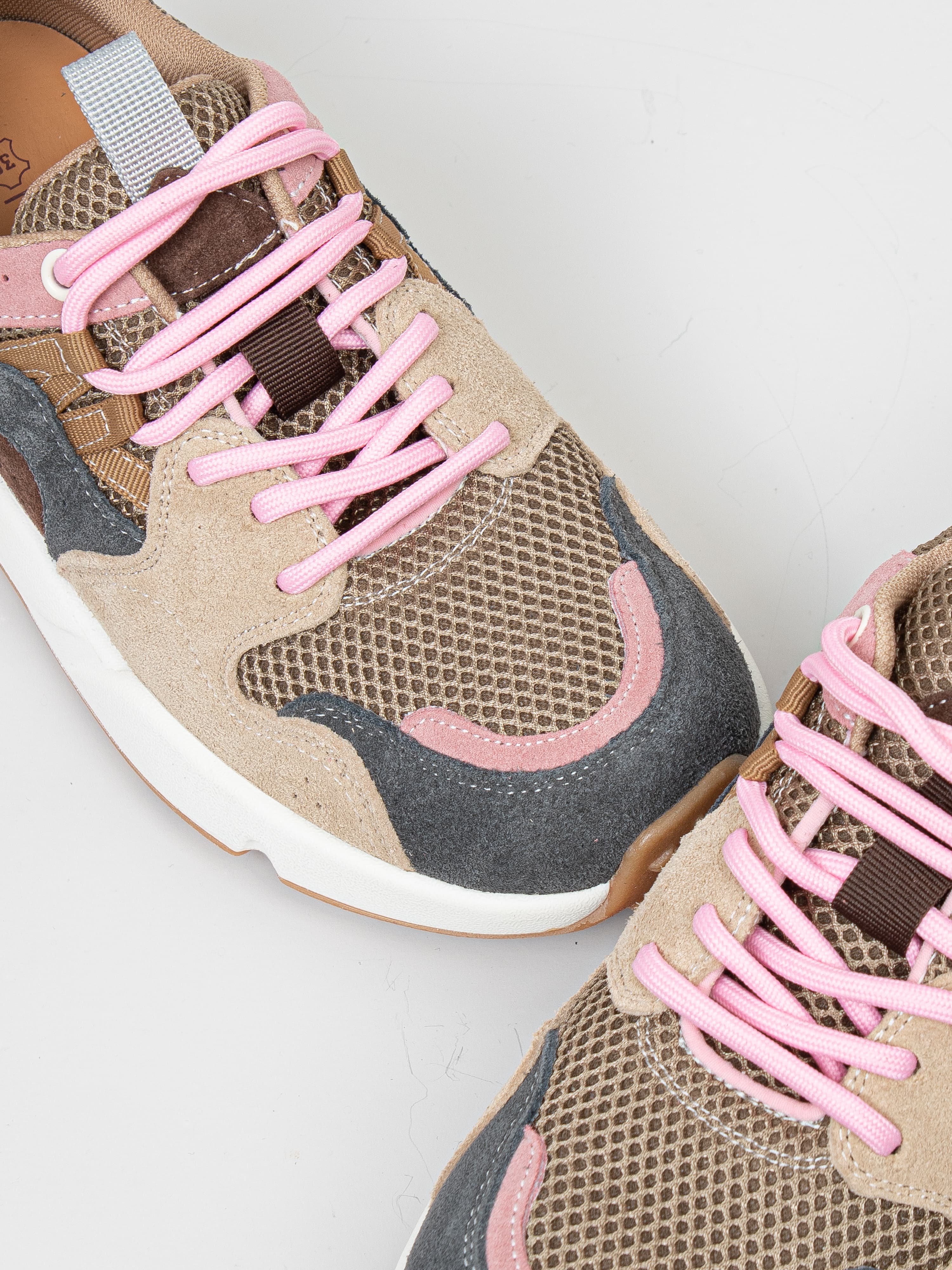Отличный амортизирующий эффект для комфортной носки. Основной материал верха – сетка и натуральная замша.