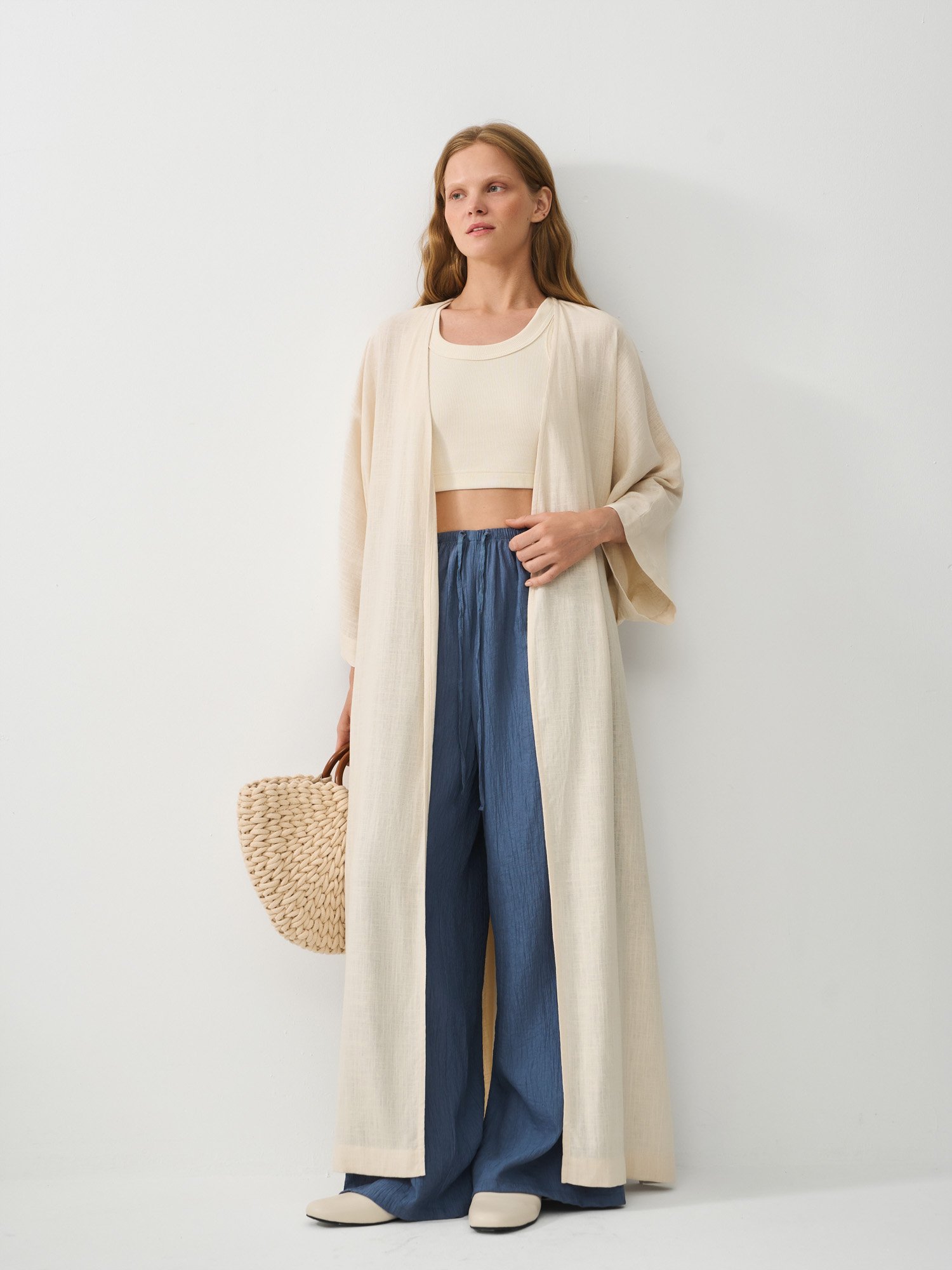 Идеальный баланс натурального льна и струящейся вискозы гарантирует комфорт, воздухопроницаемость и приятную прохладу даже в самую жаркую погоду.