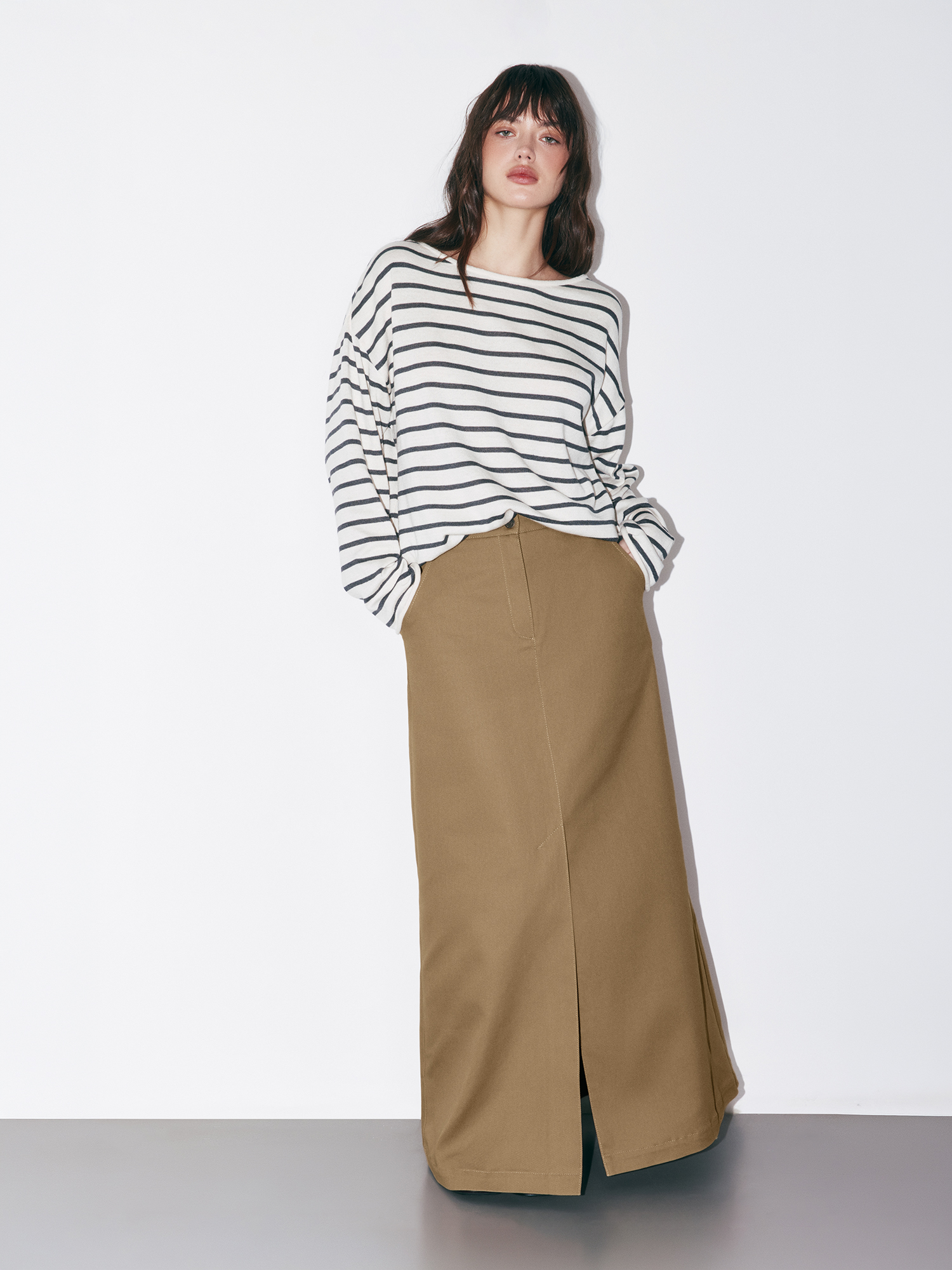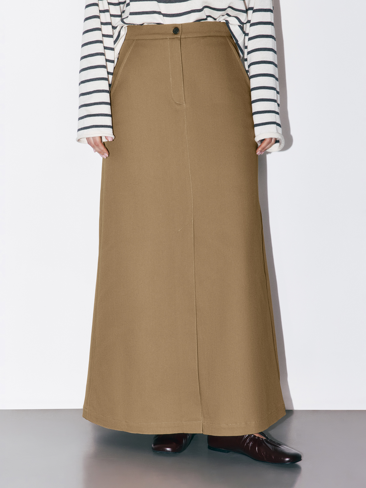 Длинная юбка до щиколотки подойдет как для непринужденных прогулок, так и для офиса.