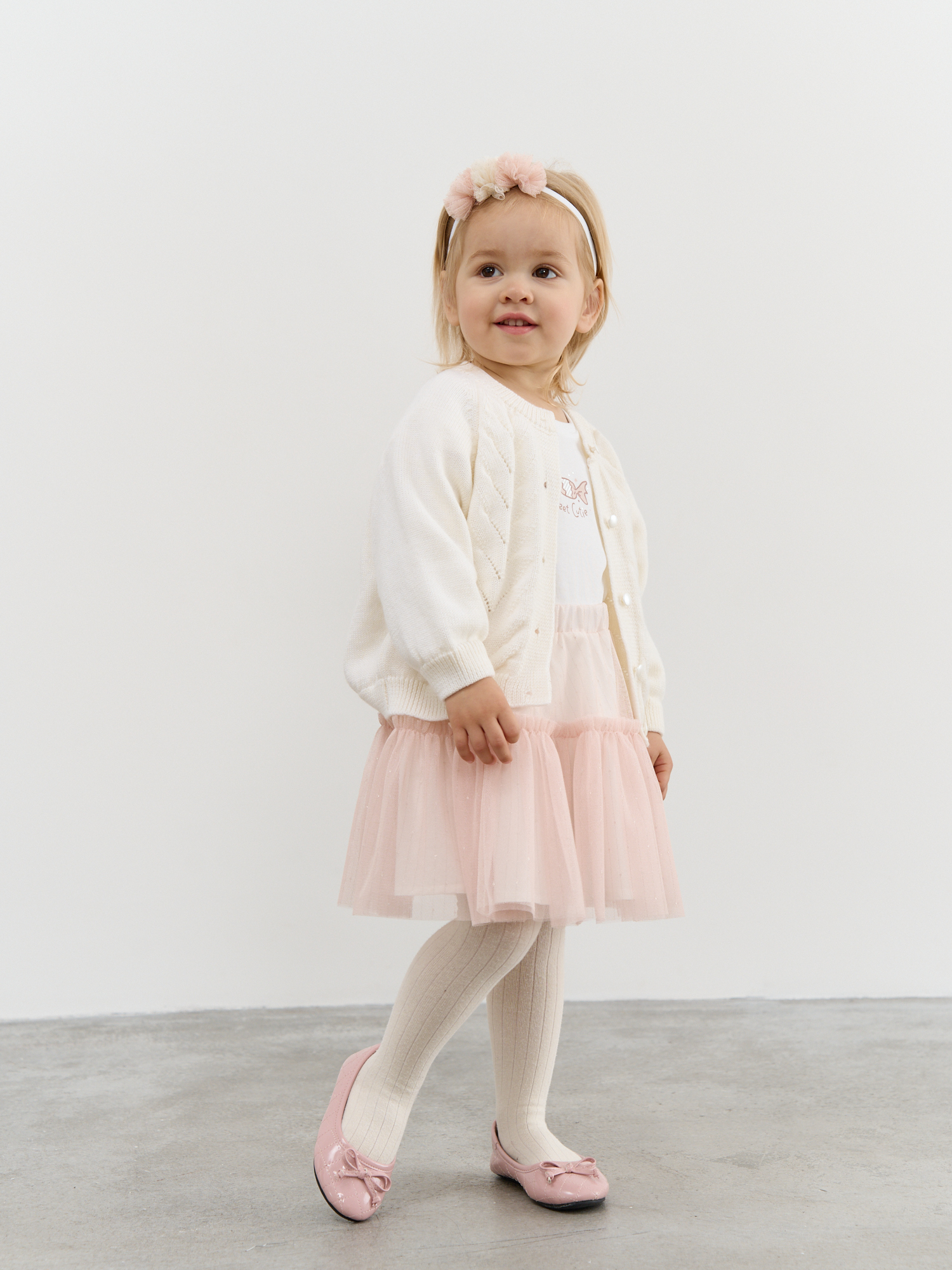 Верх – воздушный фатин с объёмной оборкой, создаёт праздничное настроение и красиво смотрится в движении.