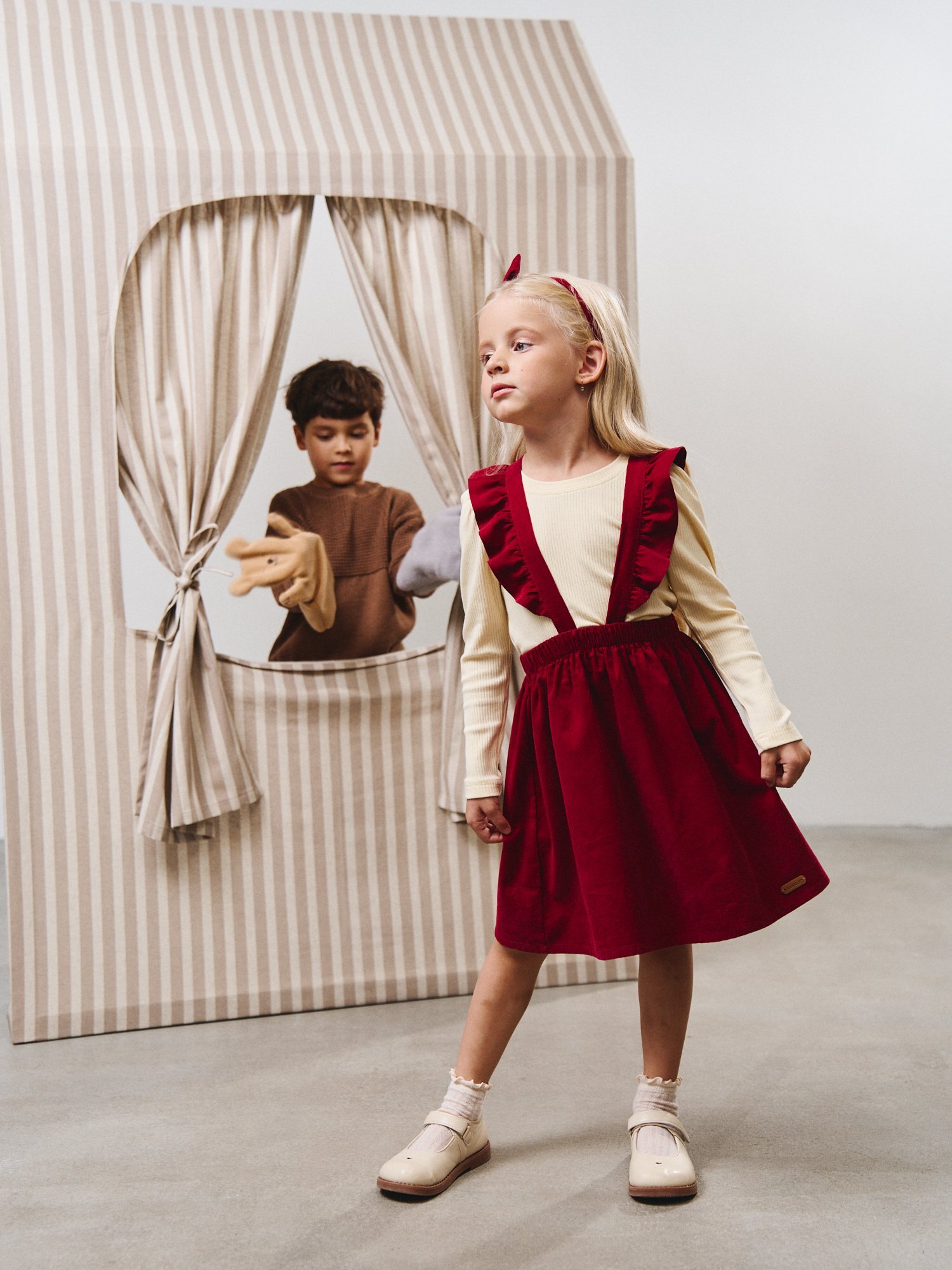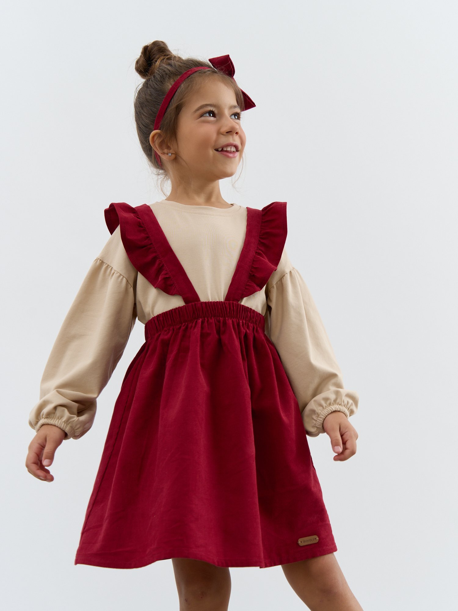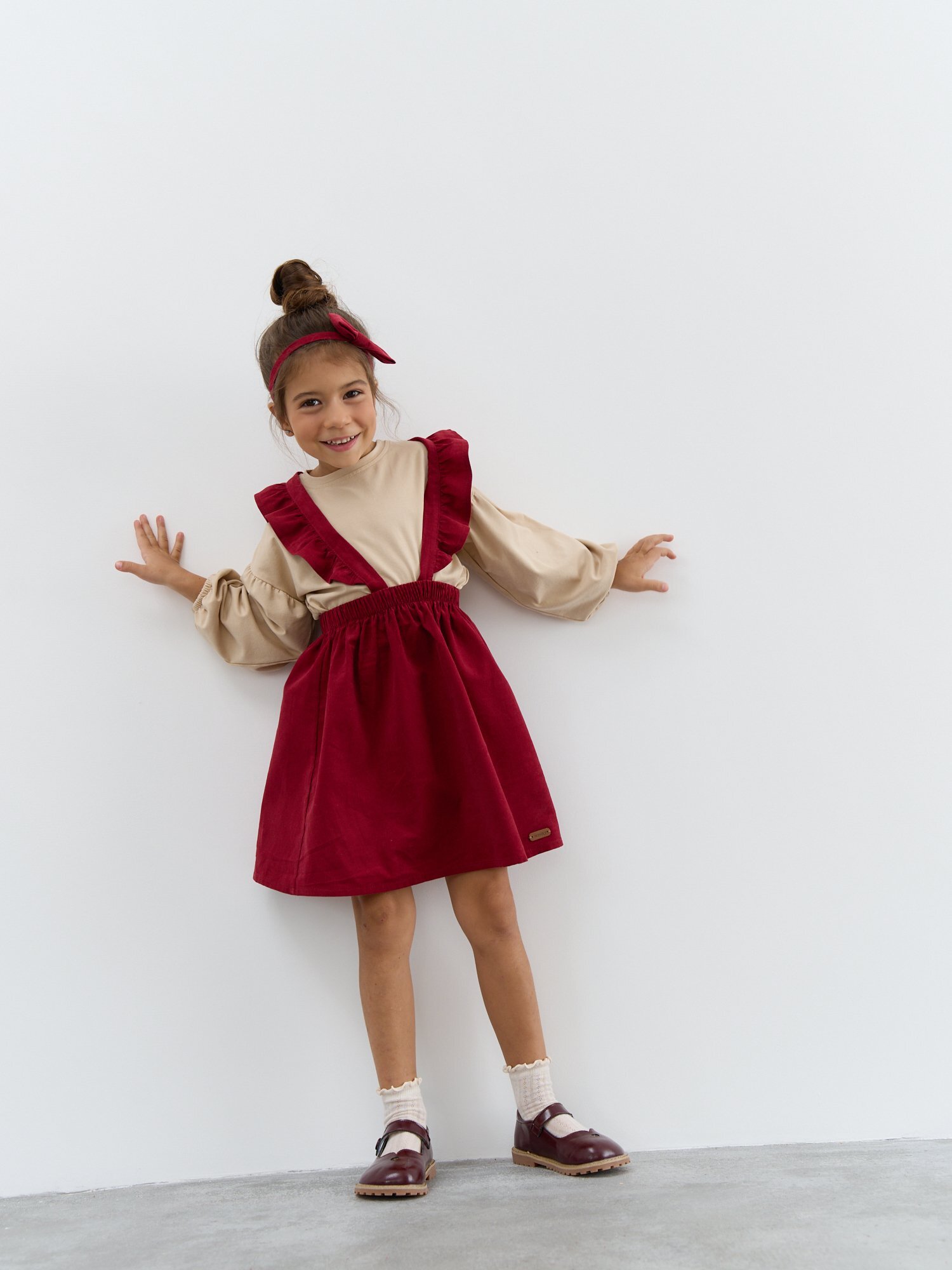 Регулируемые лямки с пуговицами легко подстраиваются по росту: удобно, если ребёнок быстро растёт или любит носить сарафан с разным верхом.