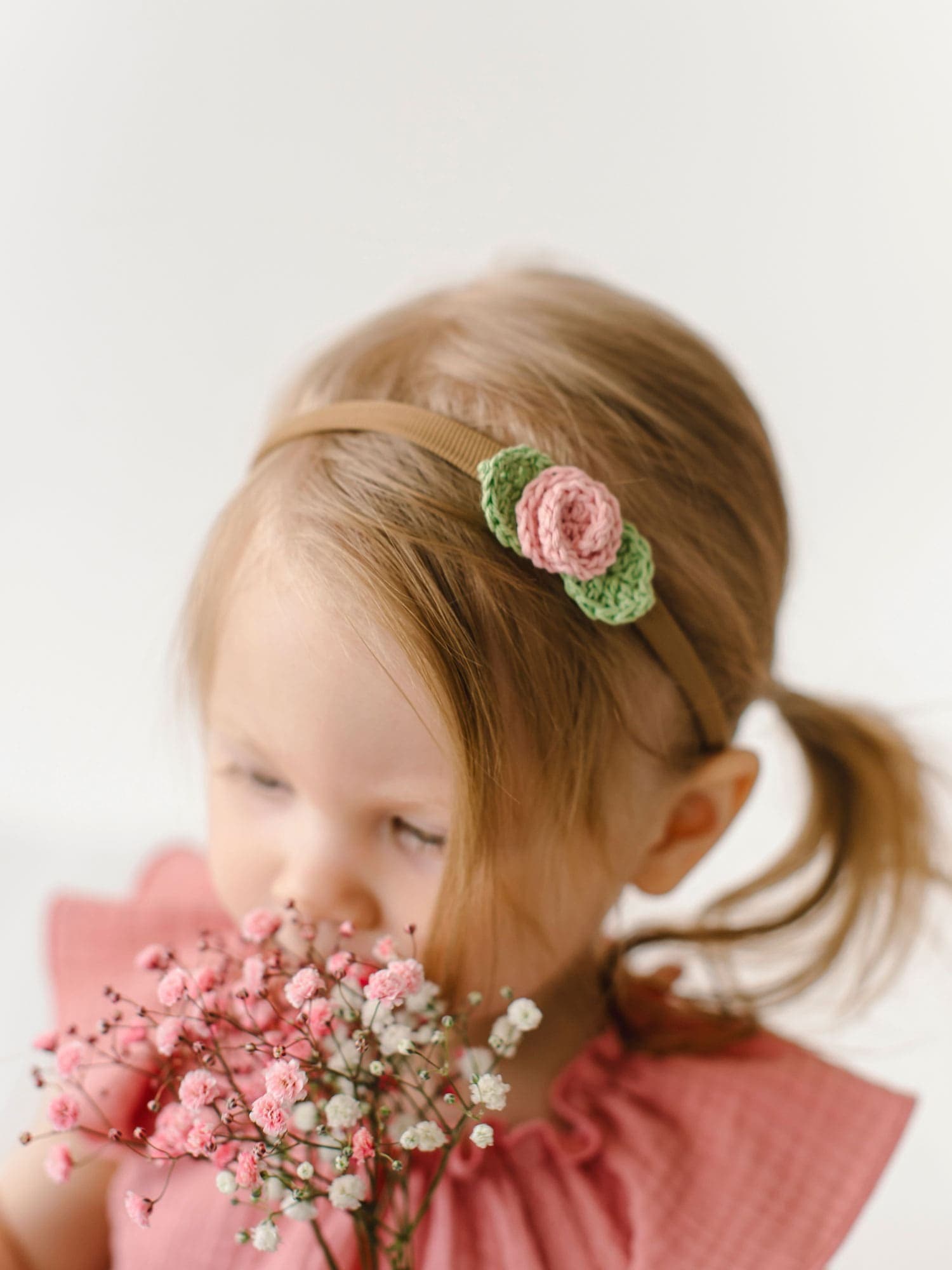 Очаровательный цветочек из хлопковой пряжи на мягкой резинке для красивых образов на каждый день.