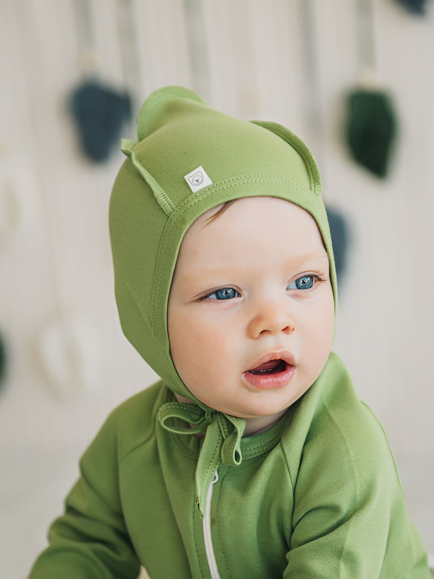 Мягко облегает голову и прикрывает ушки.