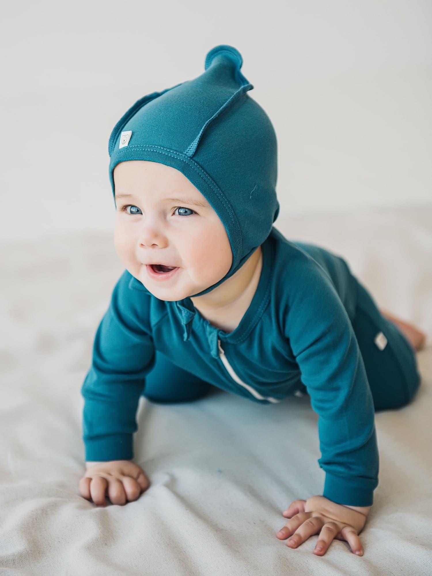 Мягко облегает голову и прикрывает ушки.