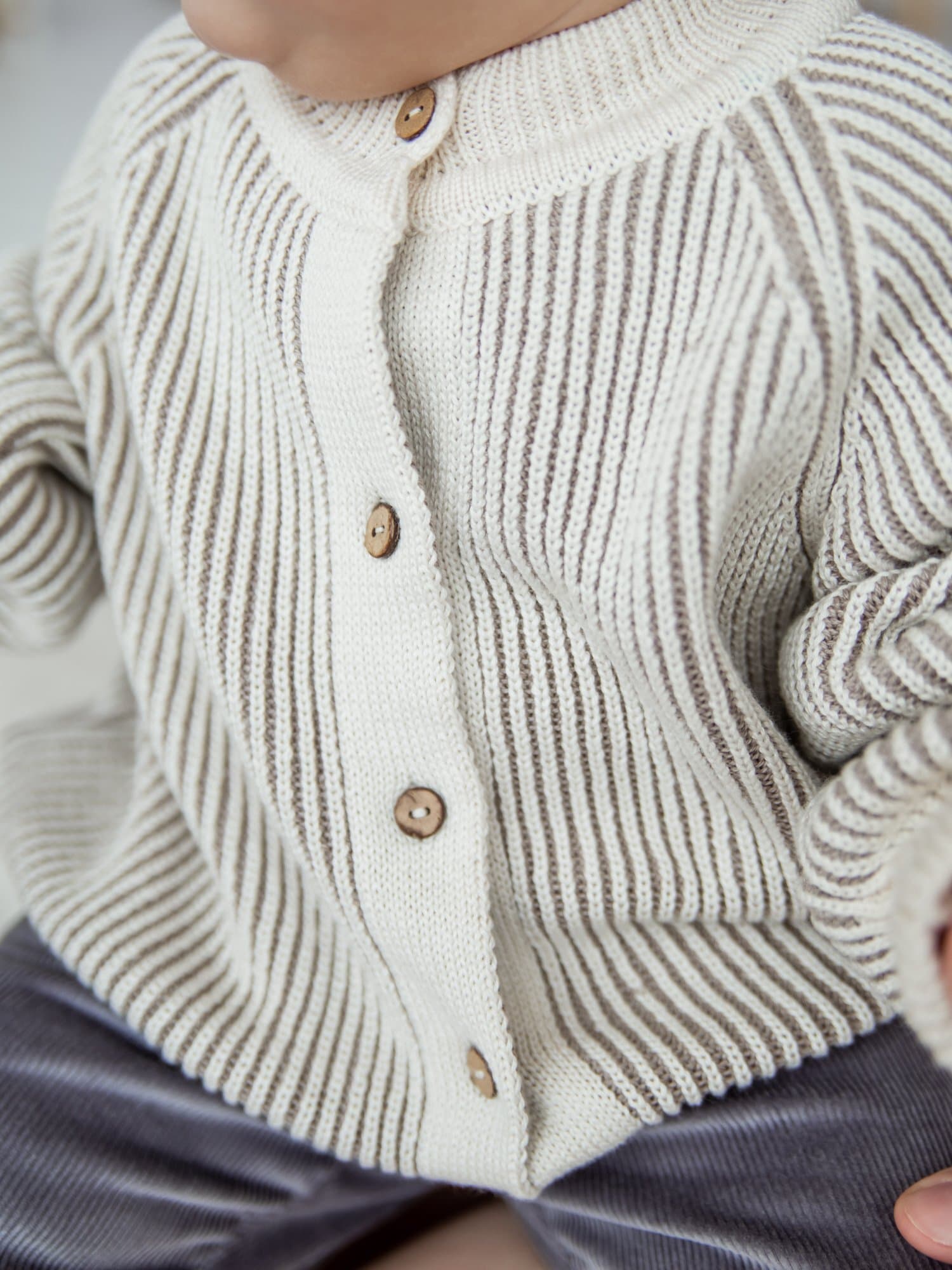 Мягкая пряжа из хлопка с акрилом приятна к телу, сохраняет тепло и не колется, поэтому кардиган удобно носить даже на футболку или бодик.