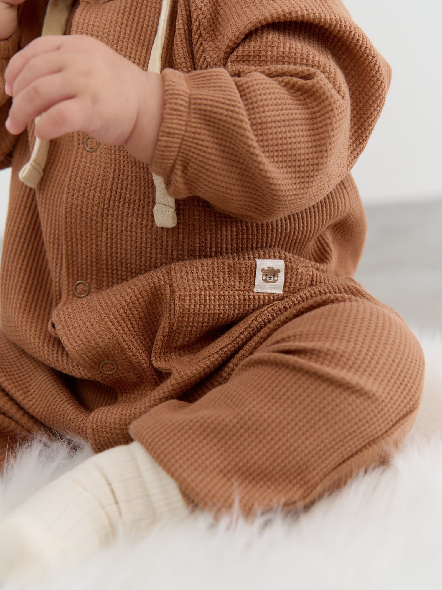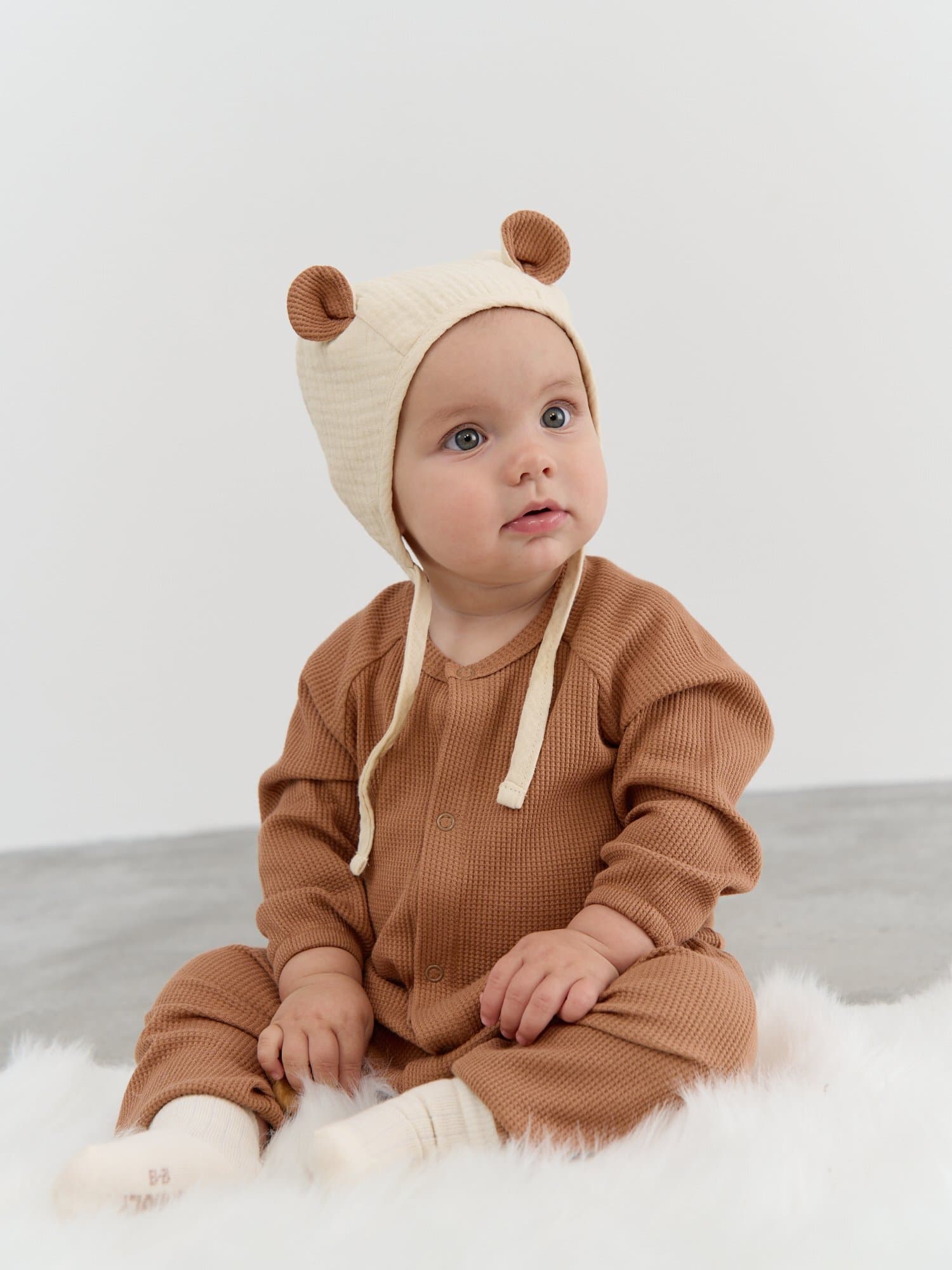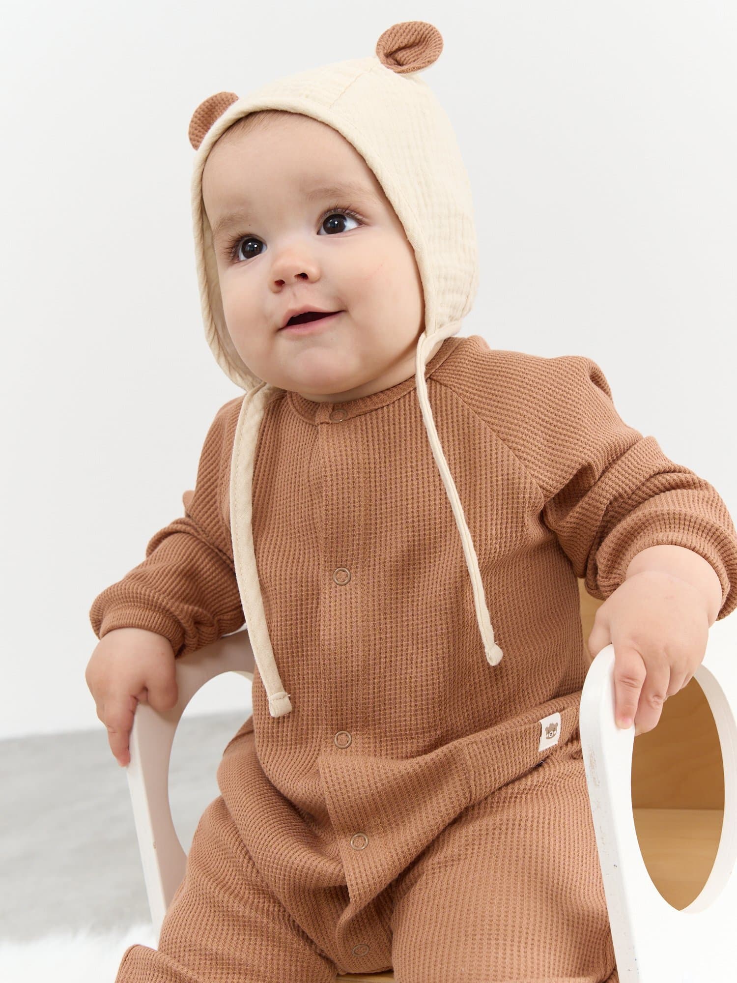 Мягкий вафельный трикотаж (100% хлопок) дышит и заботится о коже малыша, а также легко стирается и быстро сохнет.