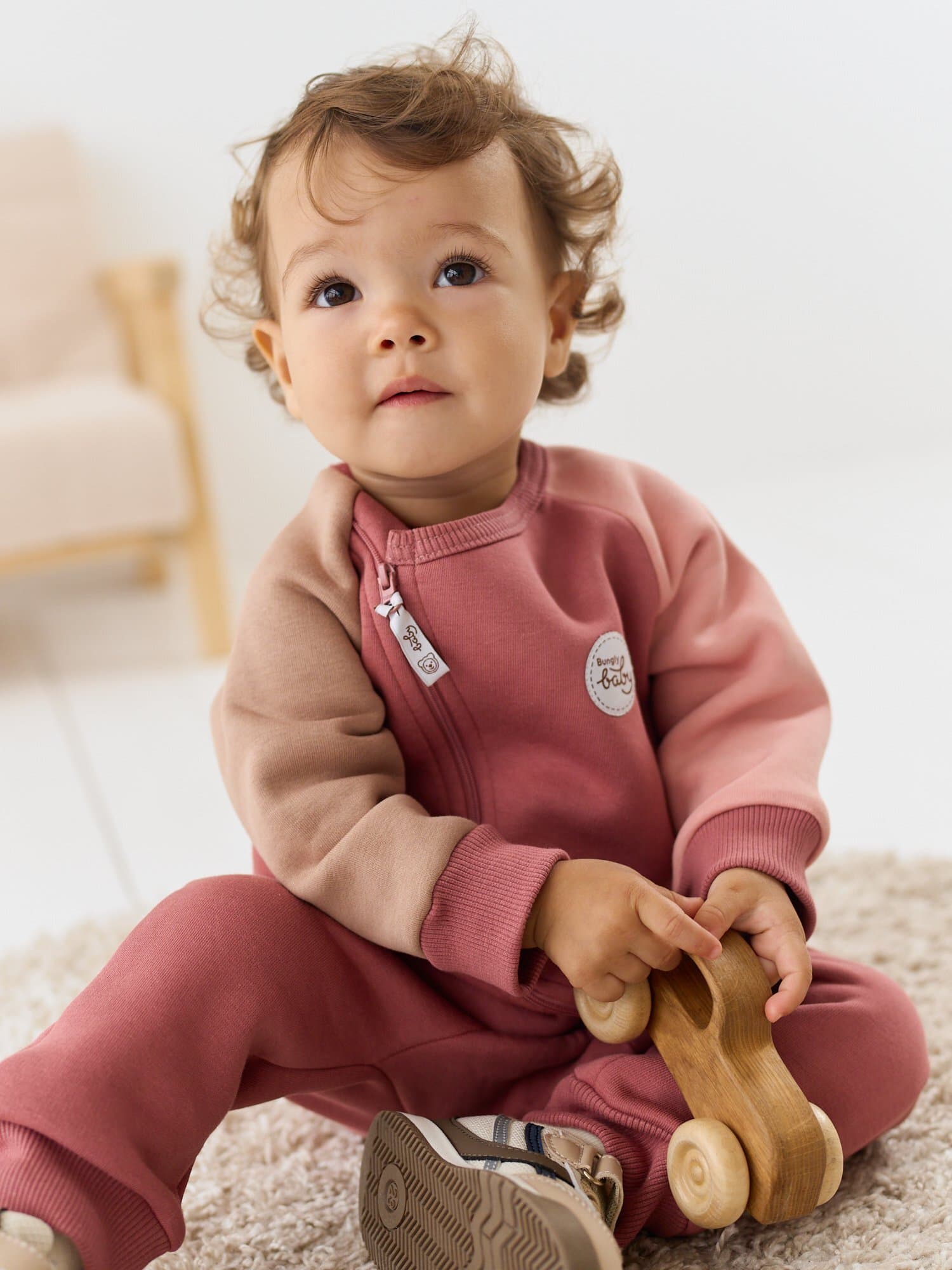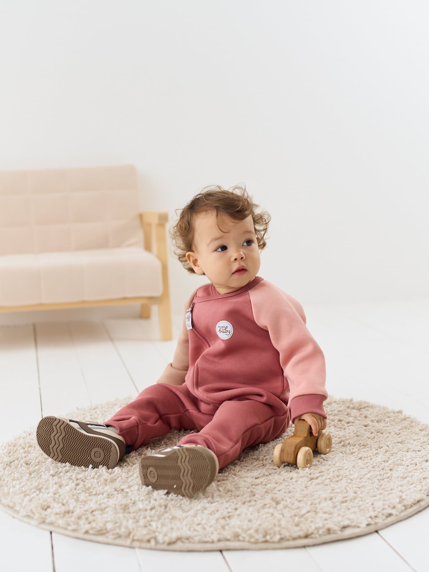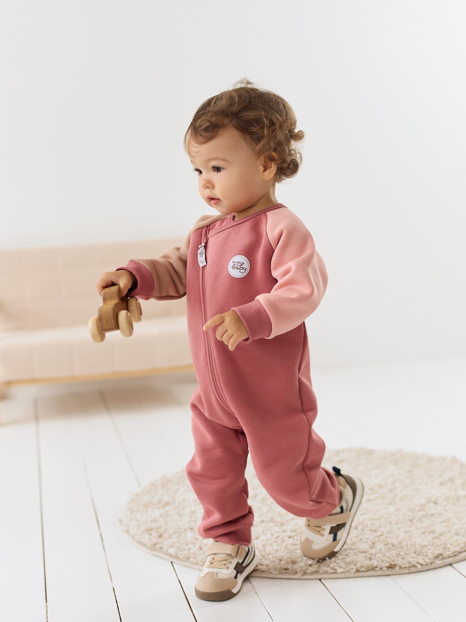 Комбинезон-косуха в стиле колор-блок из облегчённого футера с начёсом – удобный и яркий вариант для активных малышей.