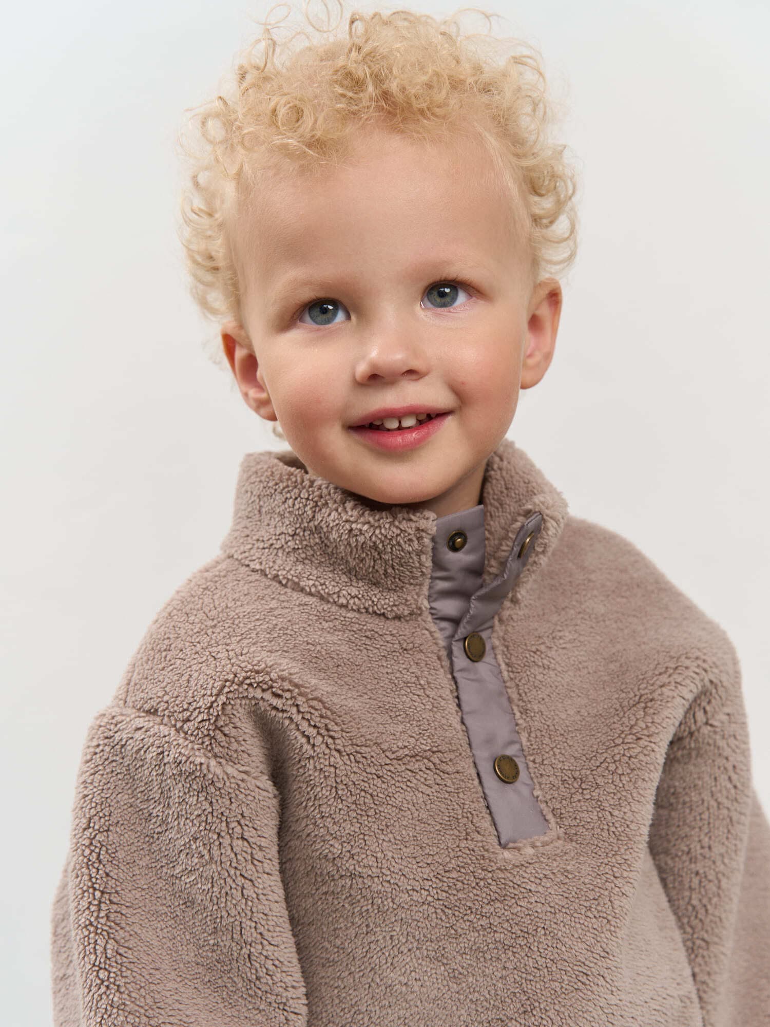 Толстовка с воротником-стойкой защищает шею от ветра – удобно для прогулок и поездок в коляске.