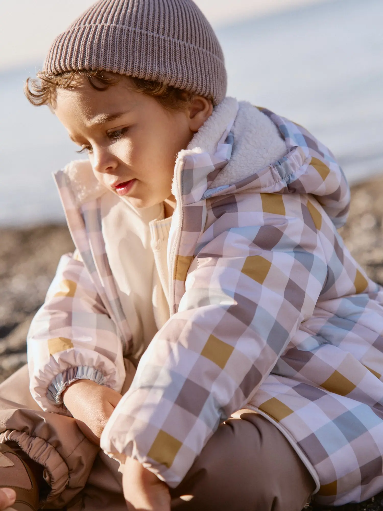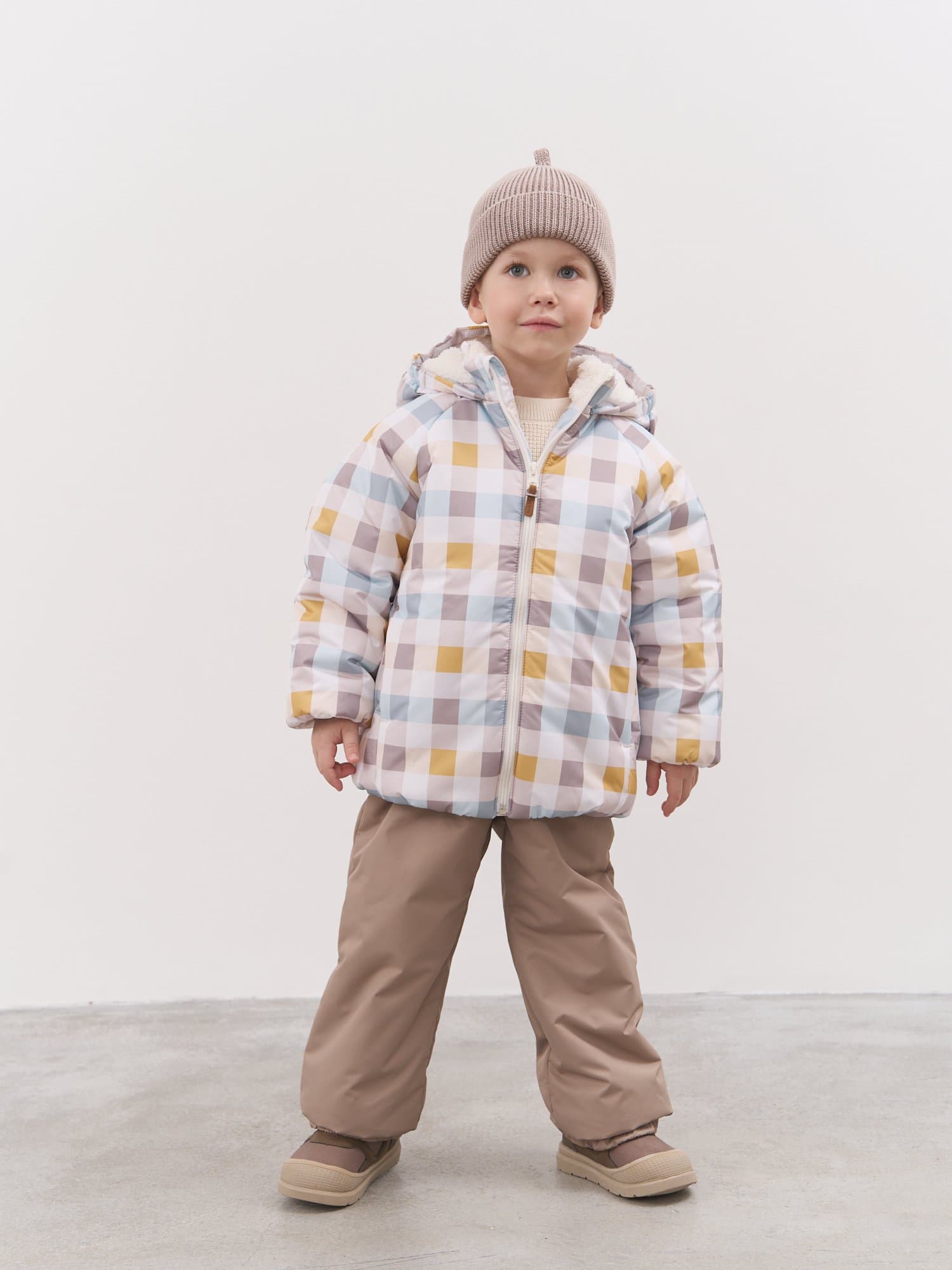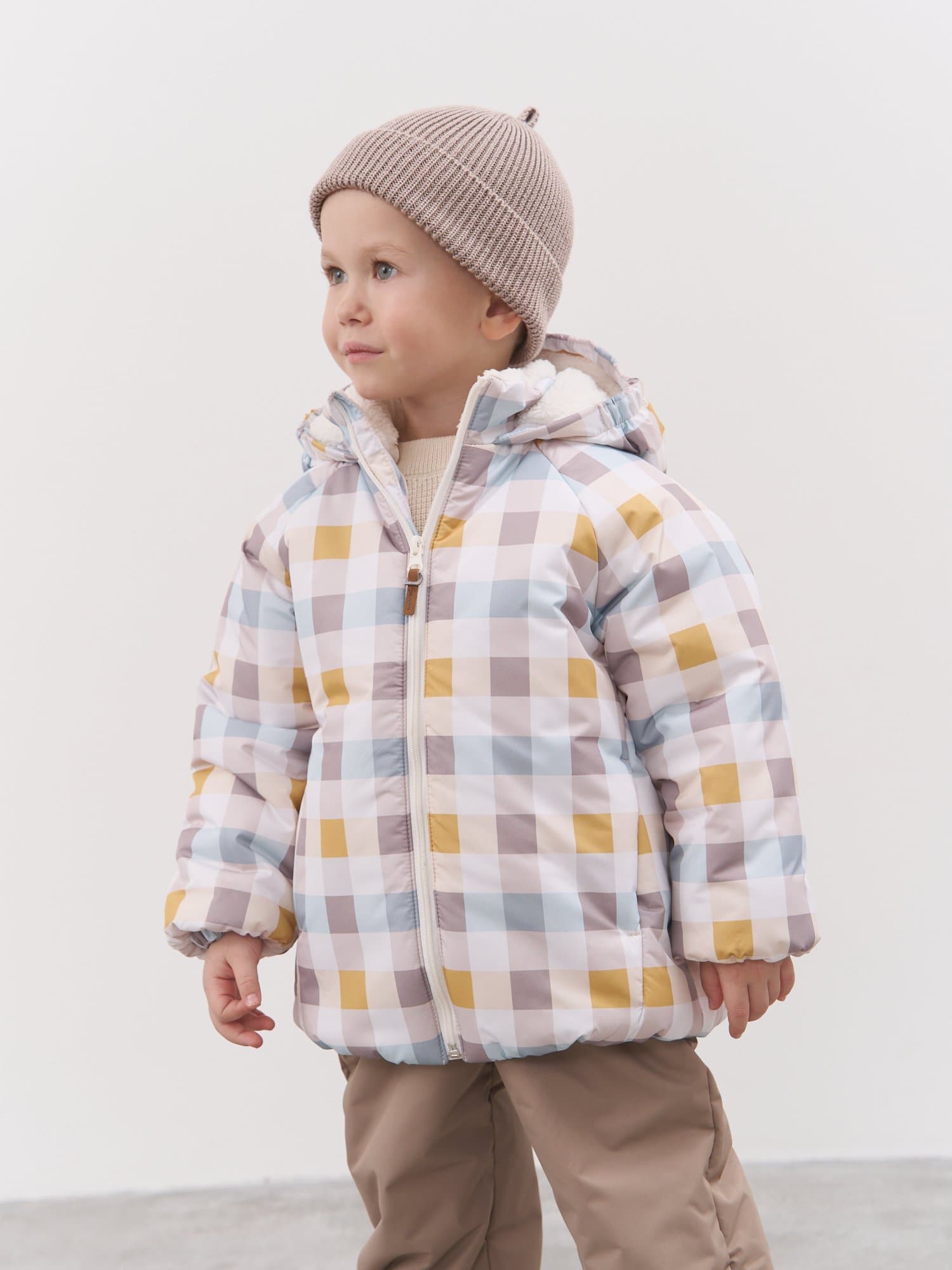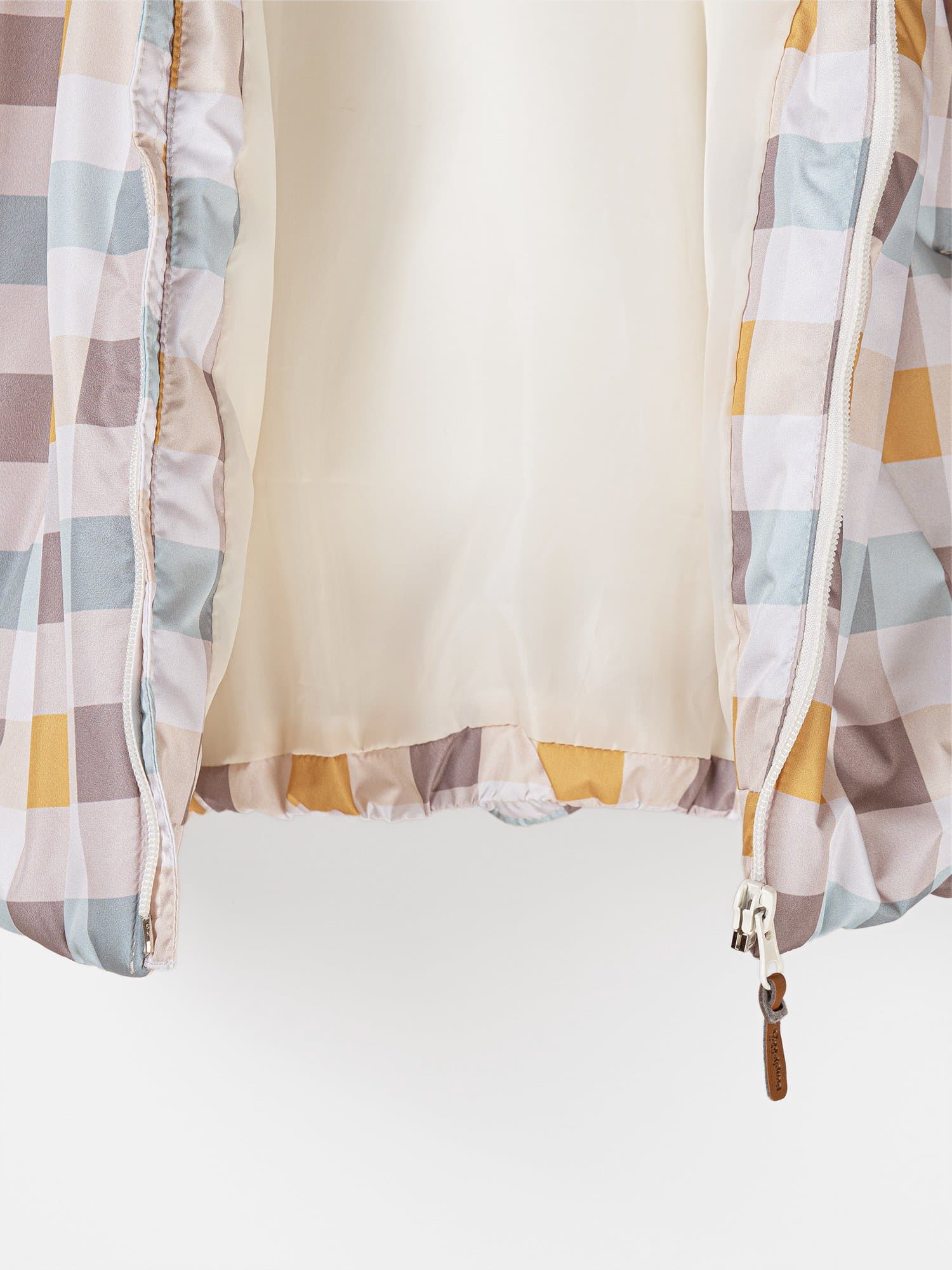 Курточная ткань в клетку со специальной пропиткой защищает от грязи, влаги и ветра.
