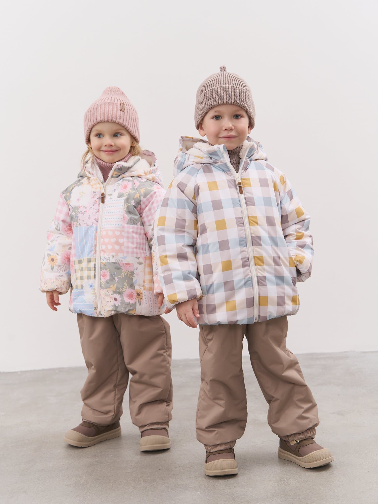 Несъёмный капюшон с меховой подкладкой и сборкой на резинку с двух сторон – не сползает при активных играх и защищает от ветра.