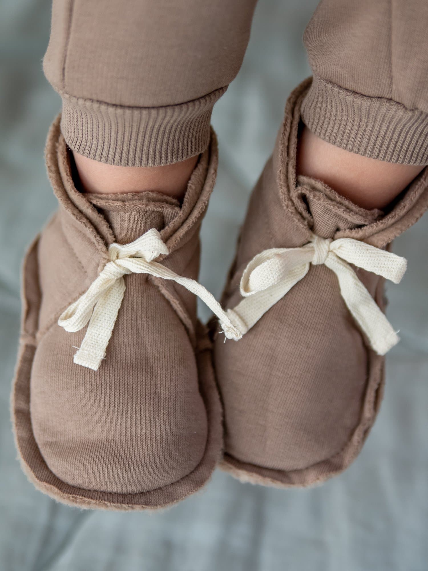 Пинетки удобно надевать поверх носочков для прогулок в коляске или использовать дома в качестве текстильной обуви.