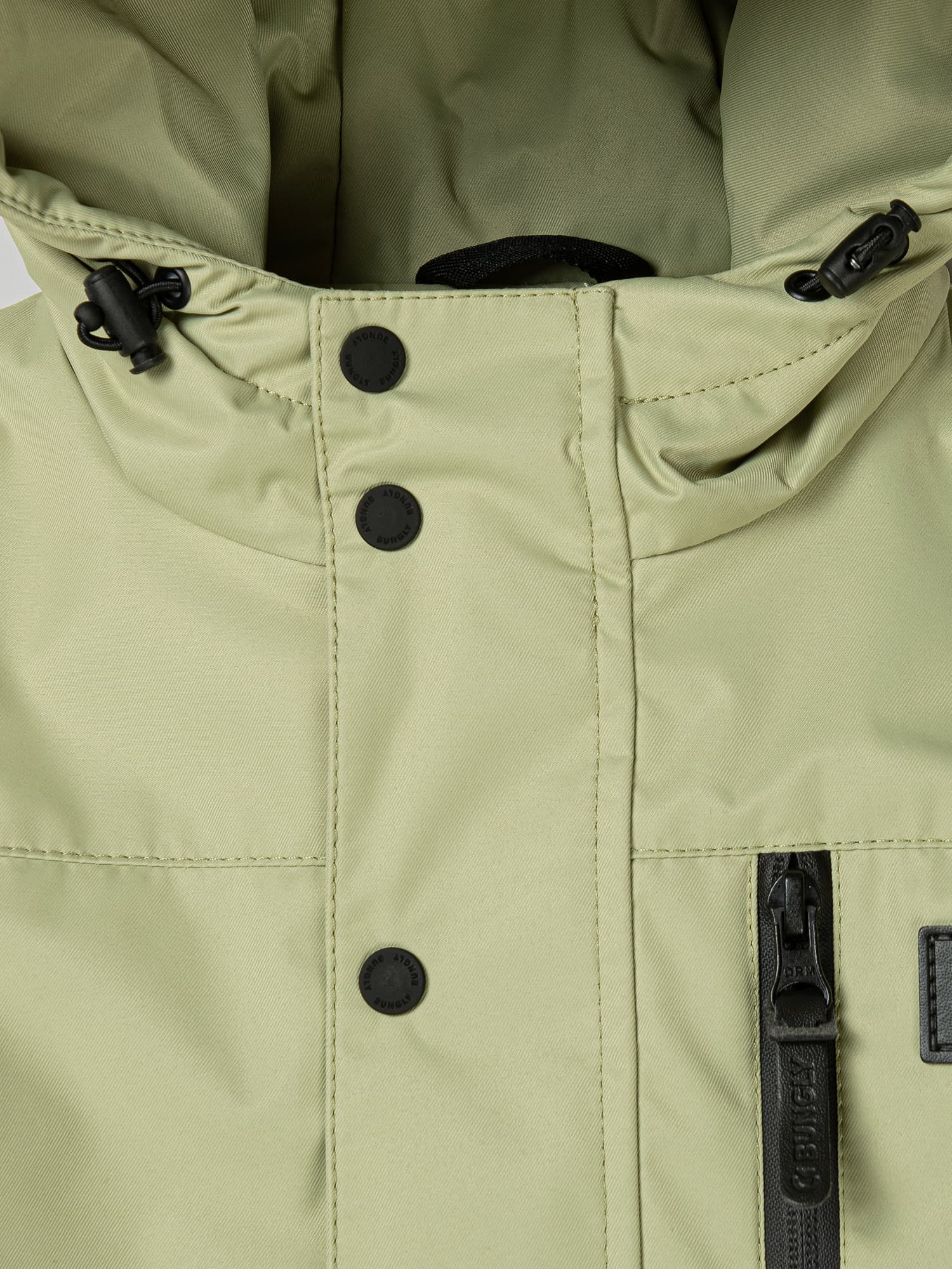 Капюшон несъемный с утяжкой на резинку с фиксатором.