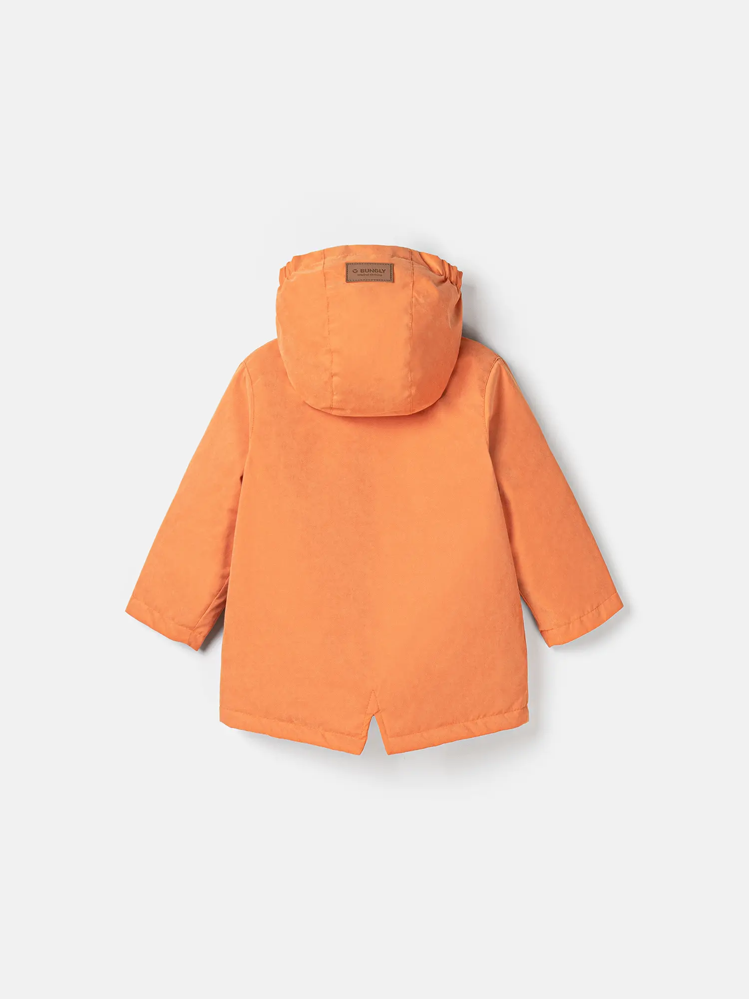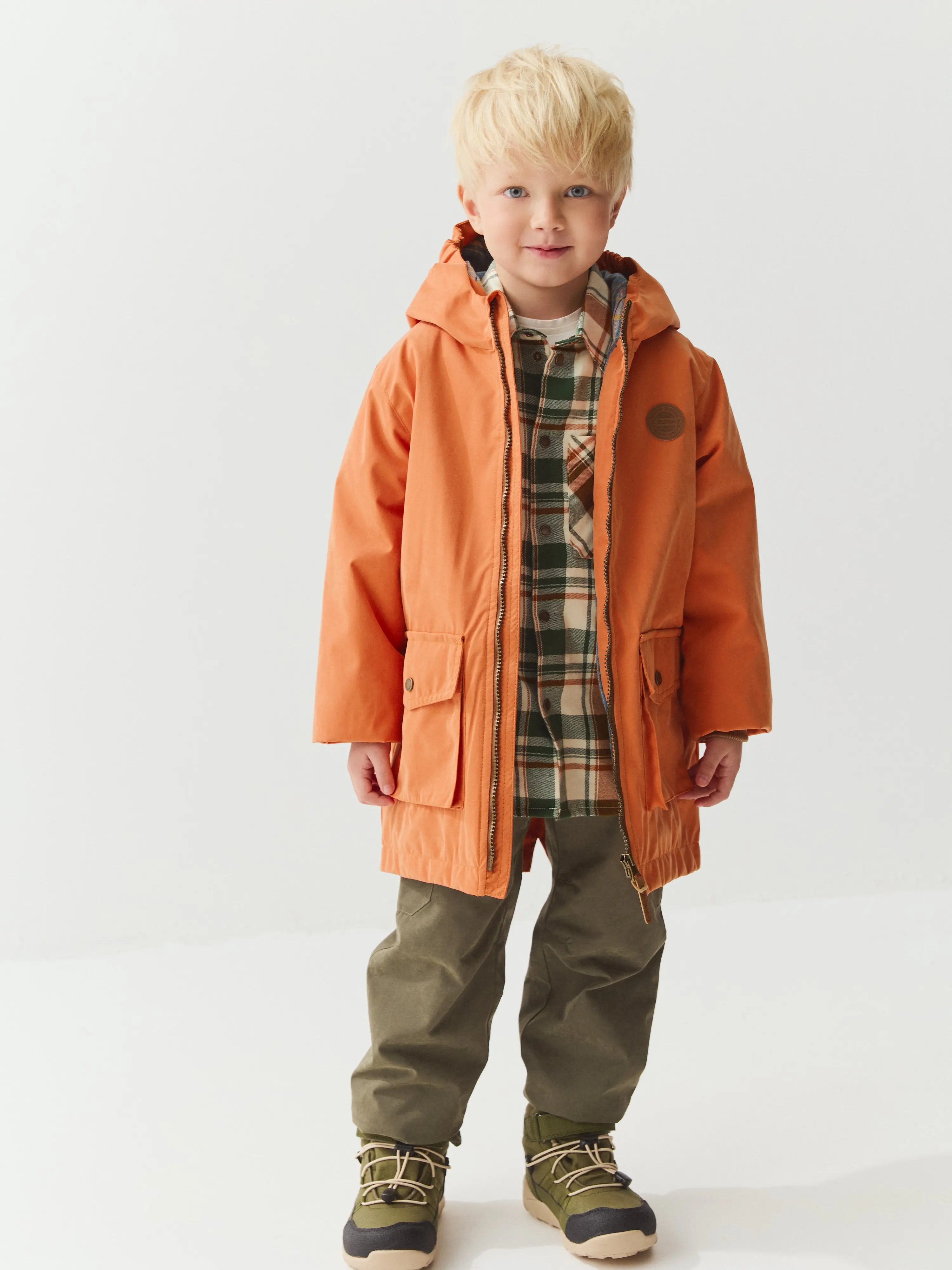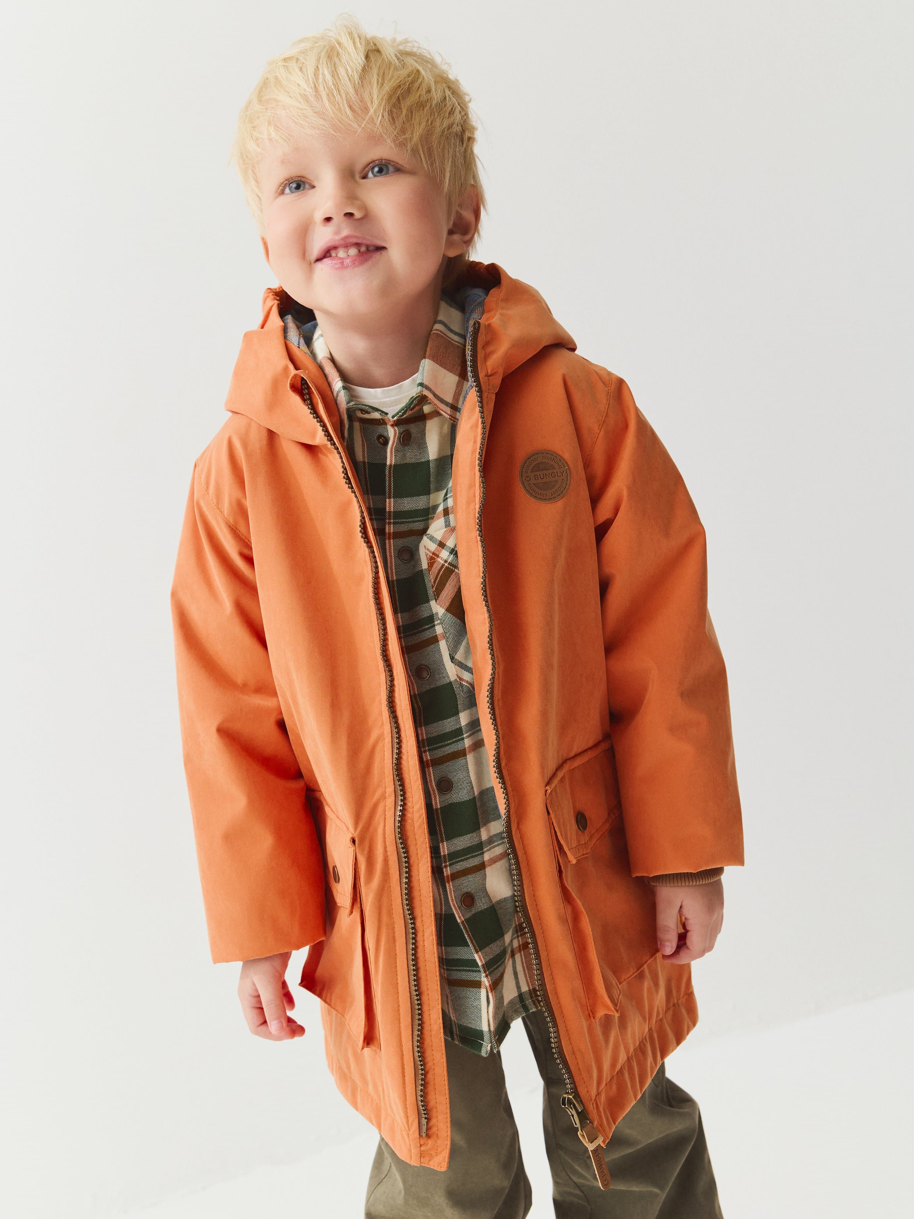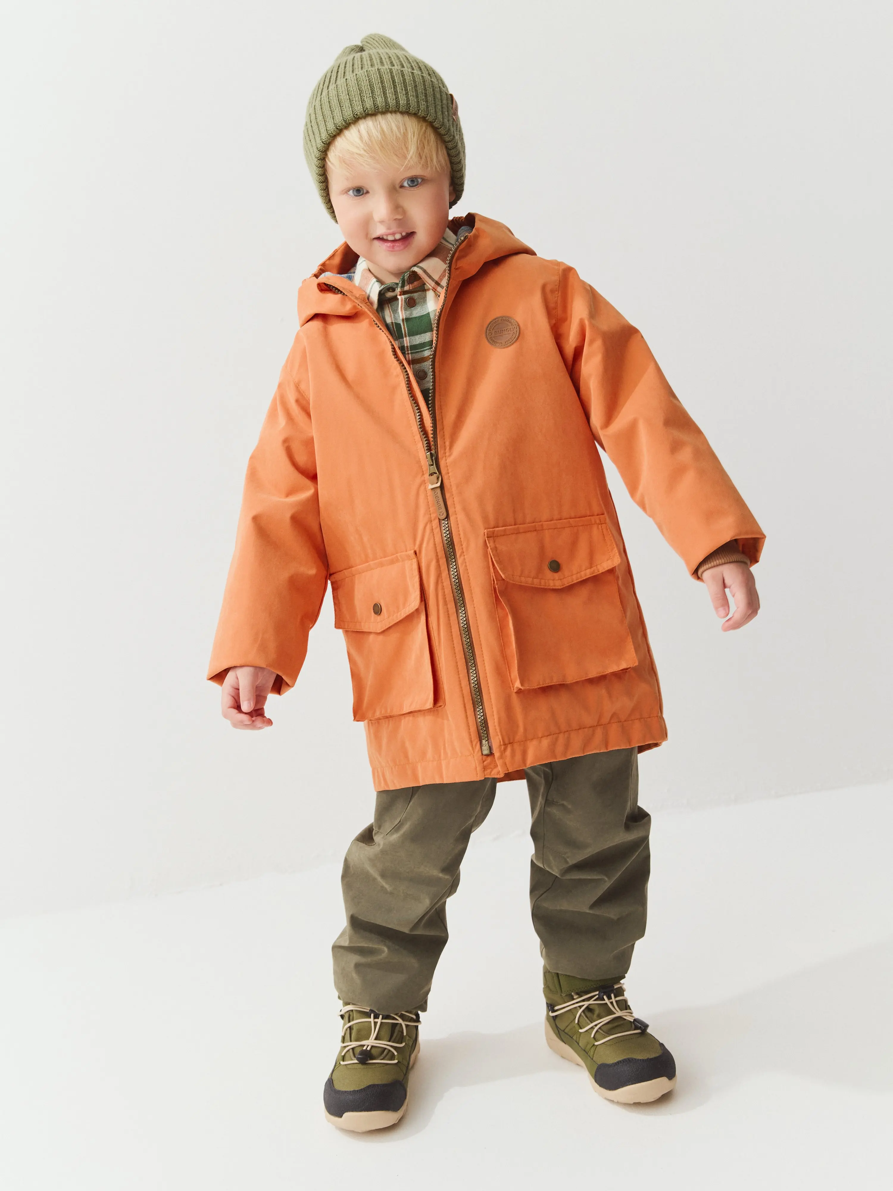 Демисезонная парка прямого силуэта из мембранной ткани с показателями 3000/3000 для защиты от влаги и ветра.