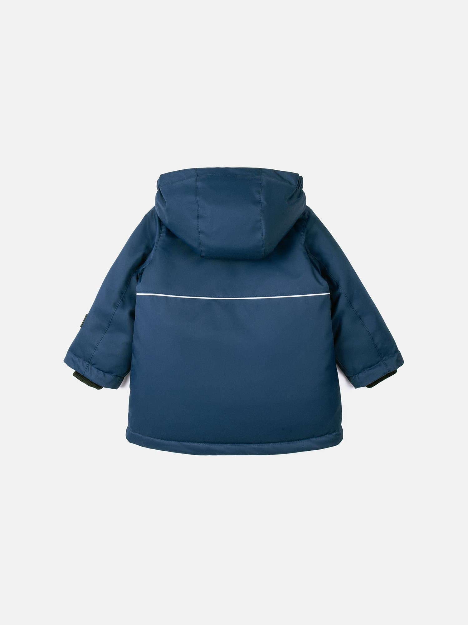 Воротник-стойка и несъемный капюшон с утяжкой на резинку для защиты от ветра.