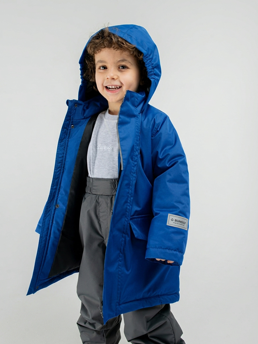 Демисезонная парка прямого силуэта из мембранной ткани для защиты от влаги и ветра.