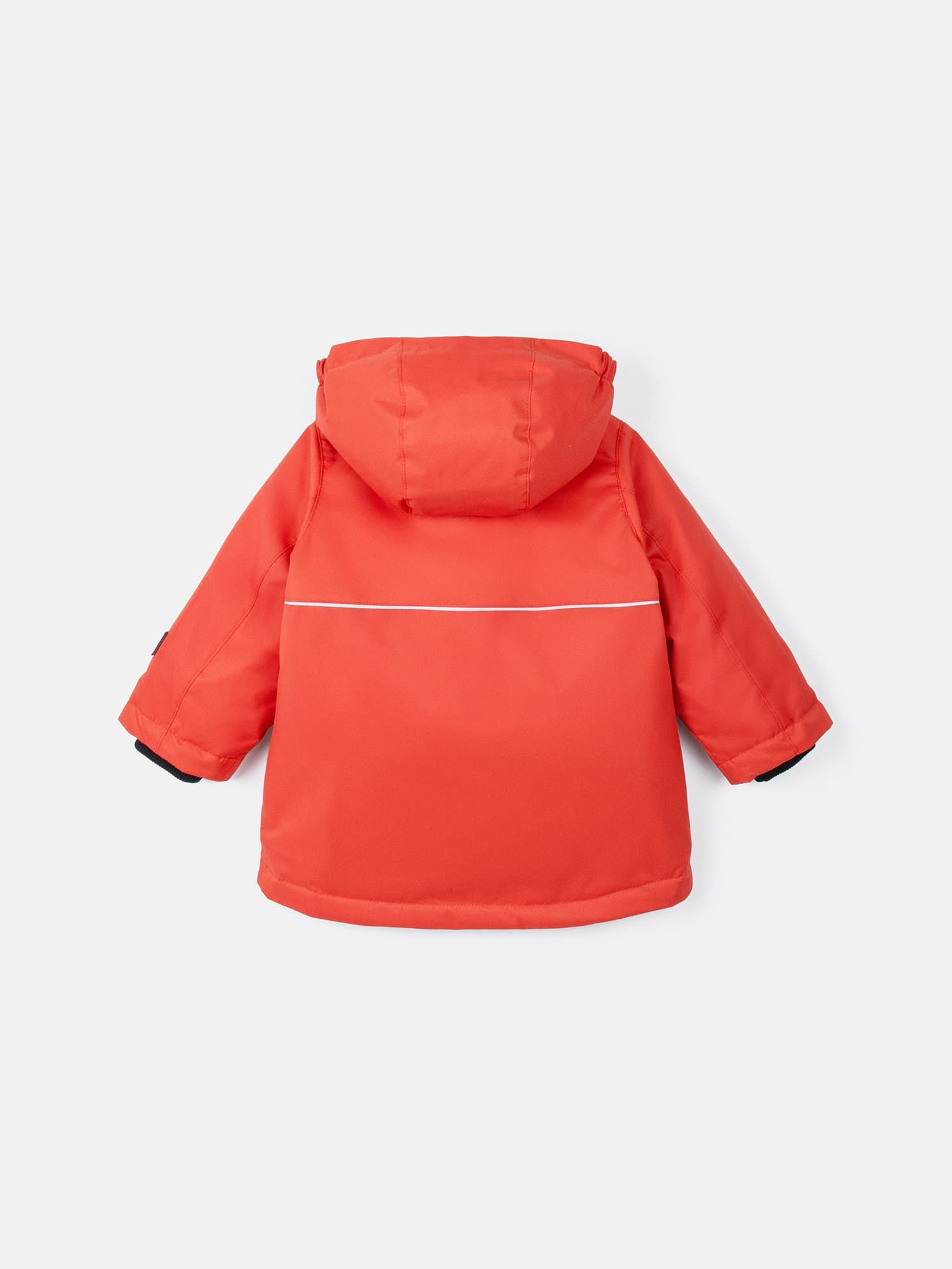 Воротник-стойка и несъемный капюшон с утяжкой на резинку для защиты от ветра.