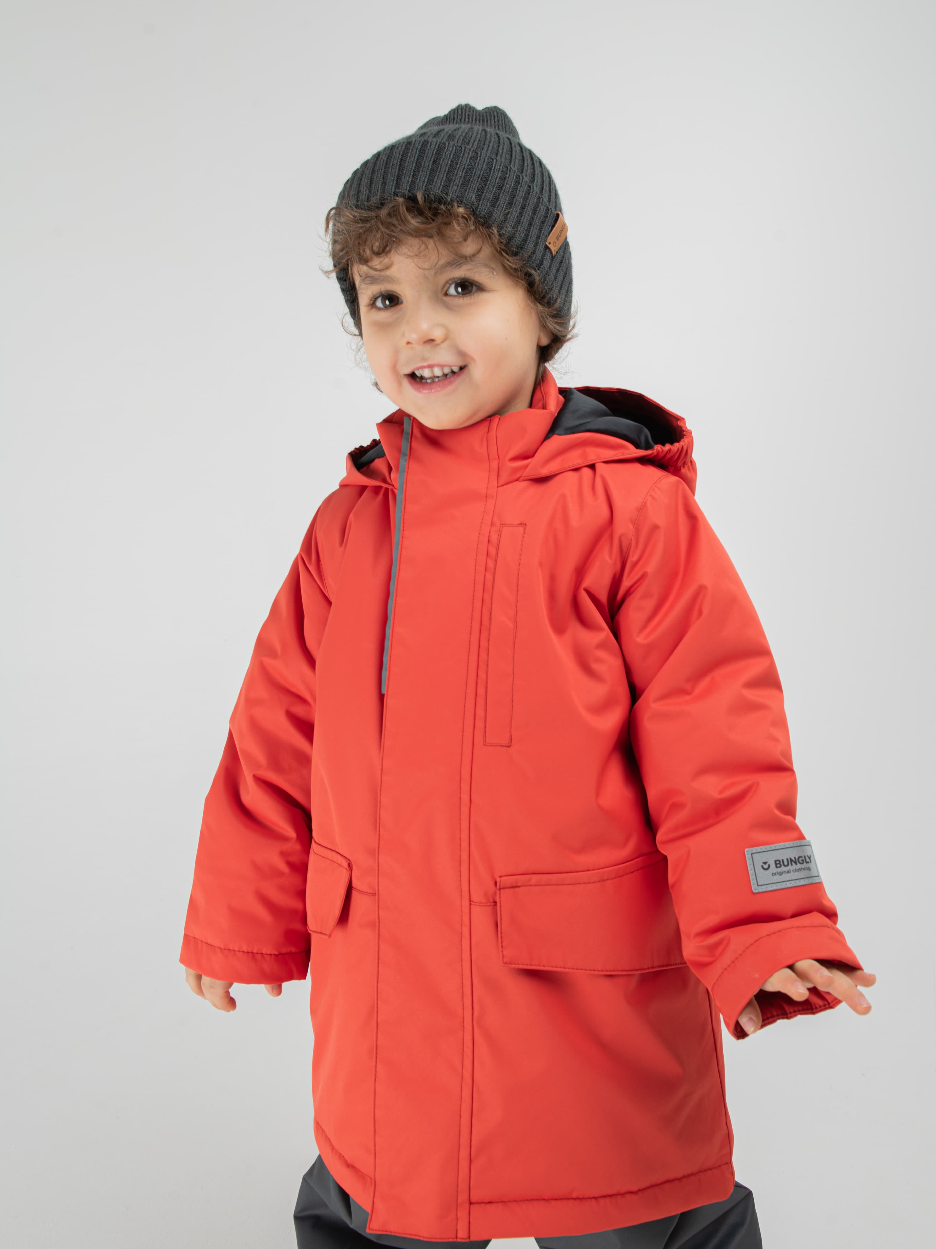 Демисезонная парка прямого силуэта из мембранной ткани для защиты от влаги и ветра.
