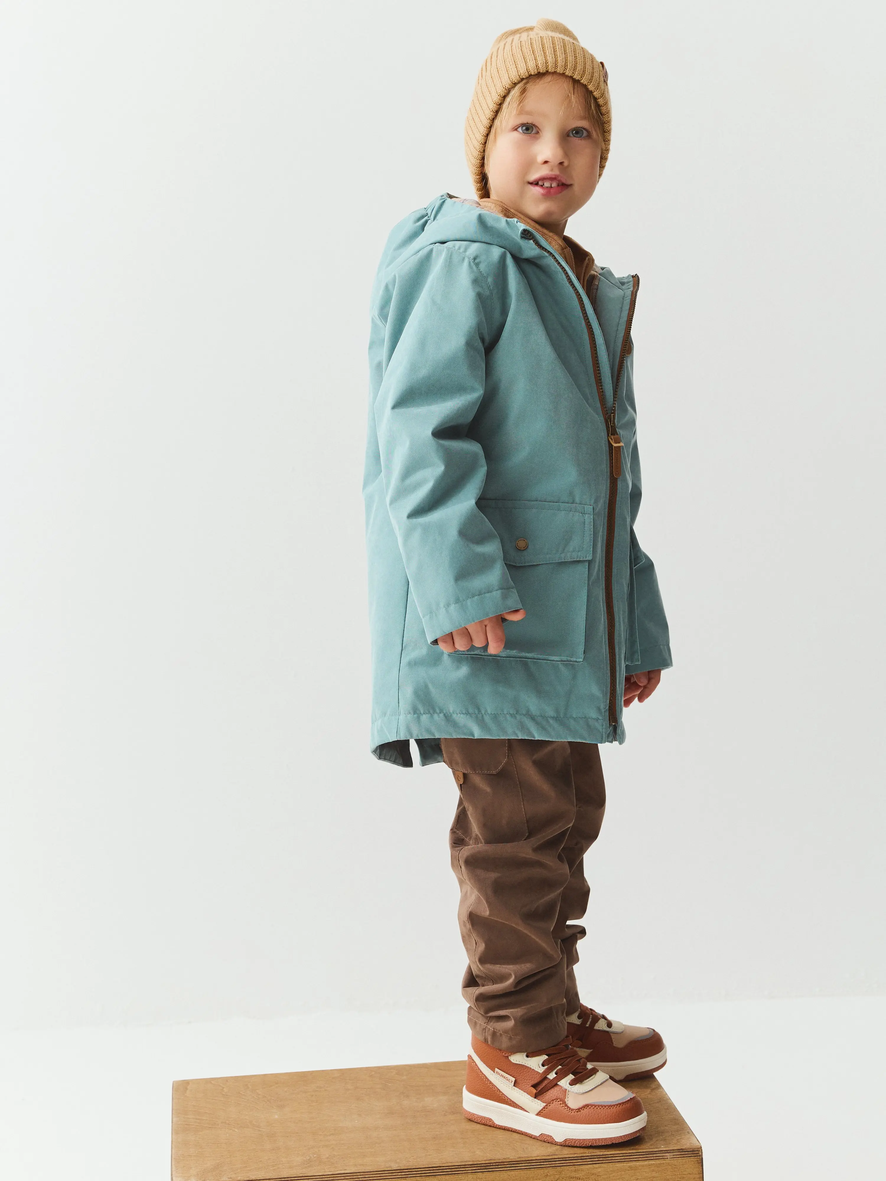 Демисезонная парка прямого силуэта из мембранной ткани с показателями 3000/3000 для защиты от влаги и ветра.