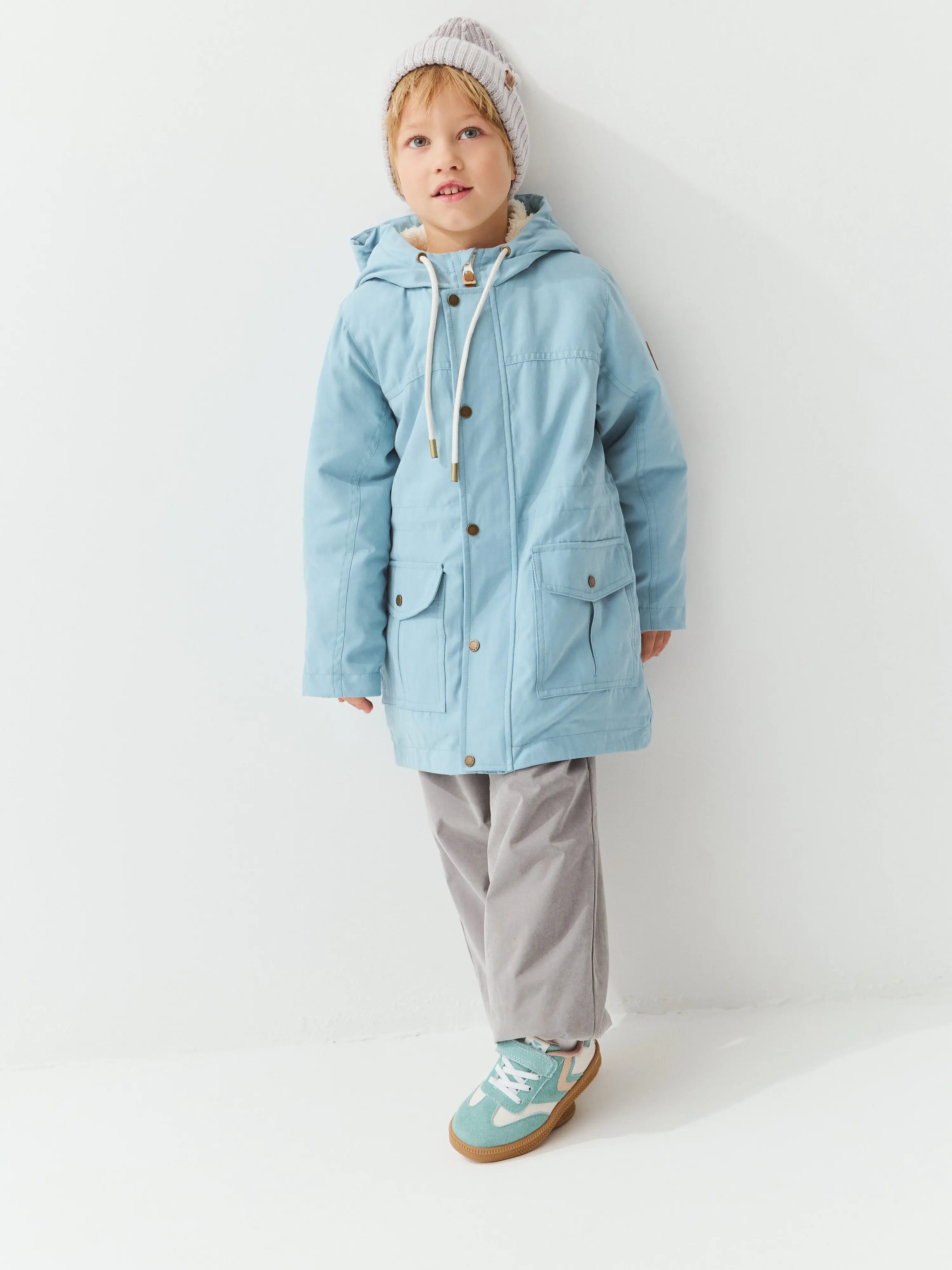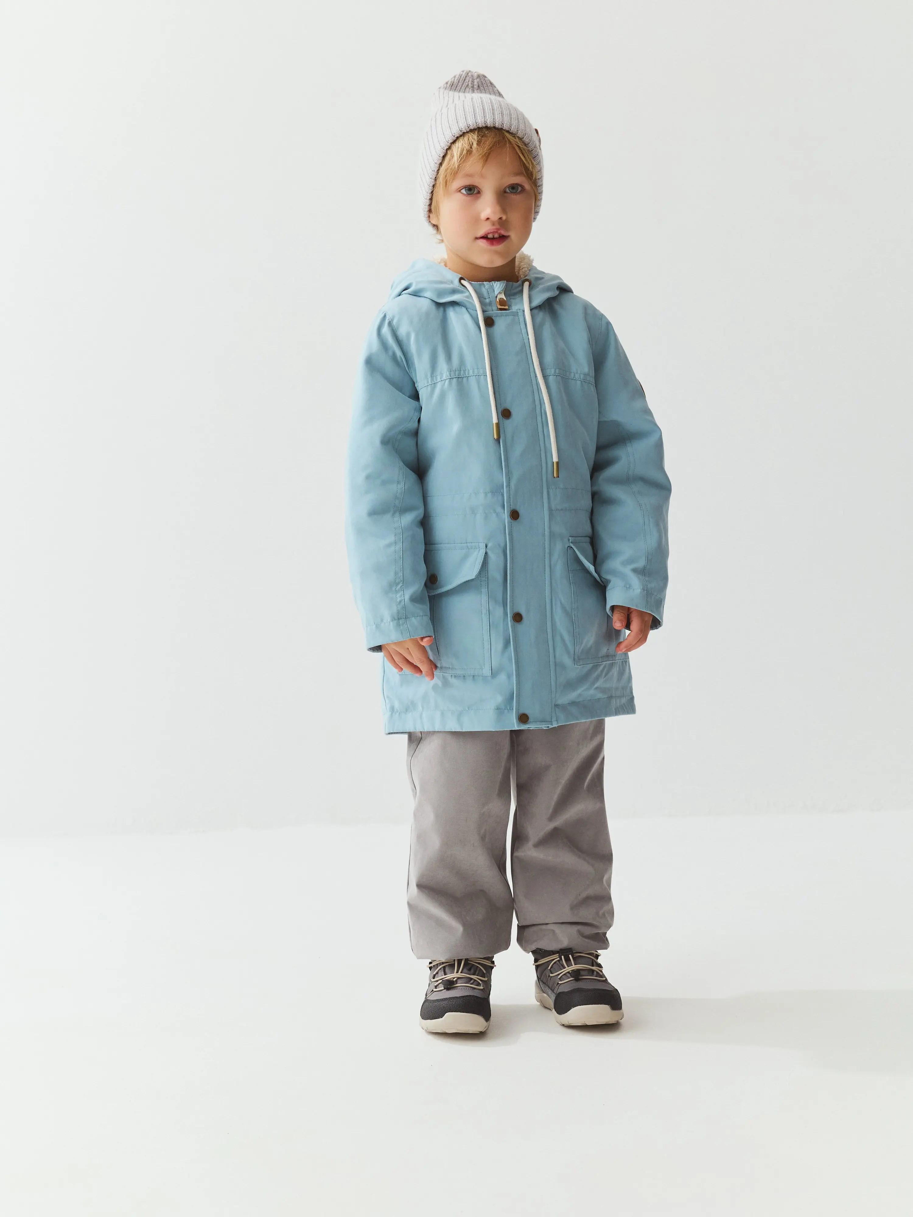 Демисезонная парка прямого силуэта из мембранной ткани с показателями 3000/3000 для защиты от влаги и ветра.