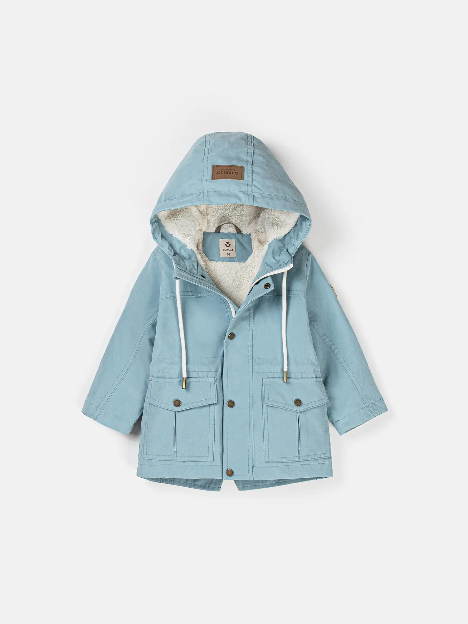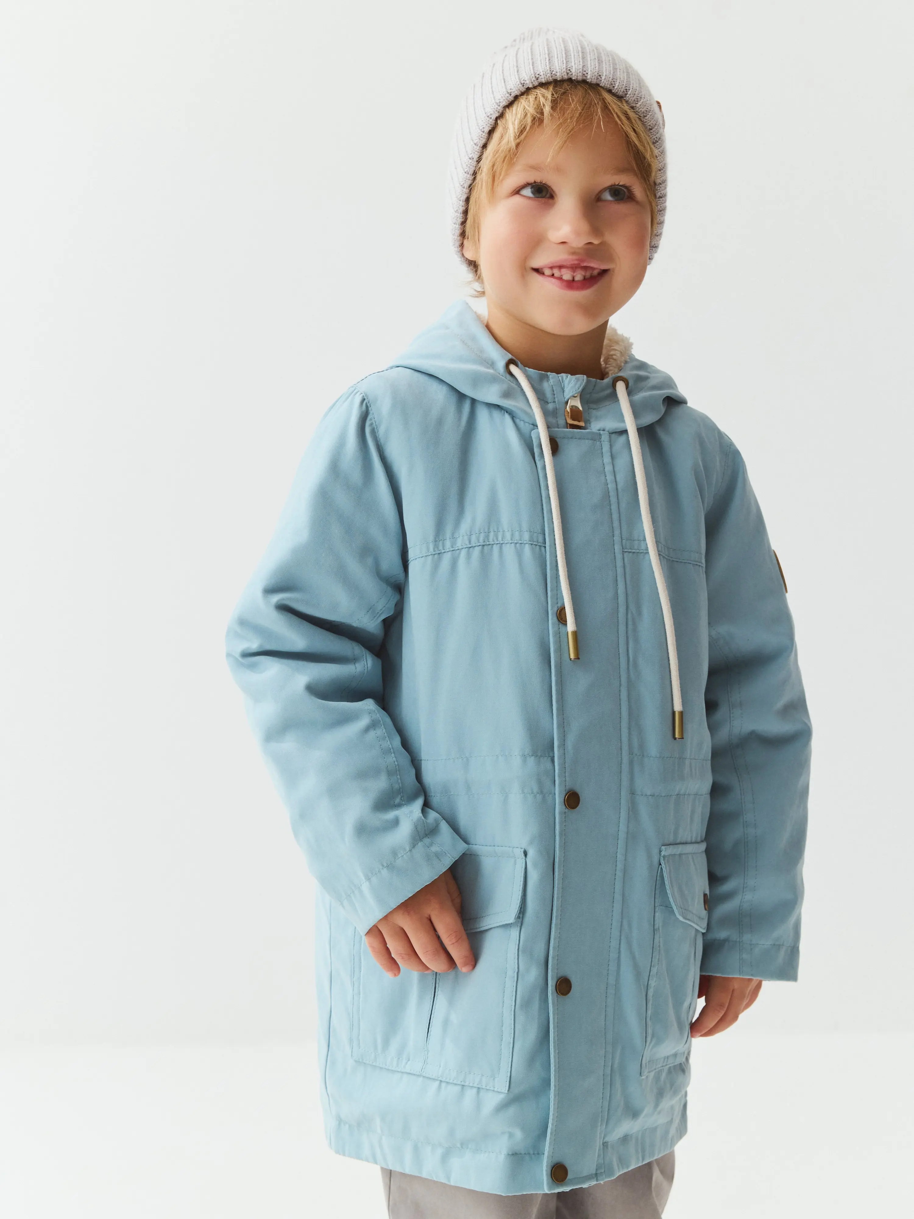 Капюшон несъемный, дополнен шнуром для утяжки и защиты от ветра.