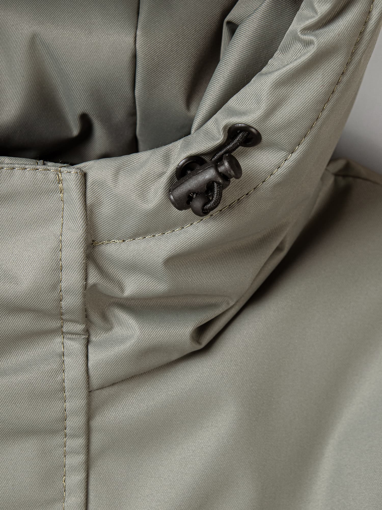 Капюшон несъемный с утяжкой на резинку с фиксатором.
