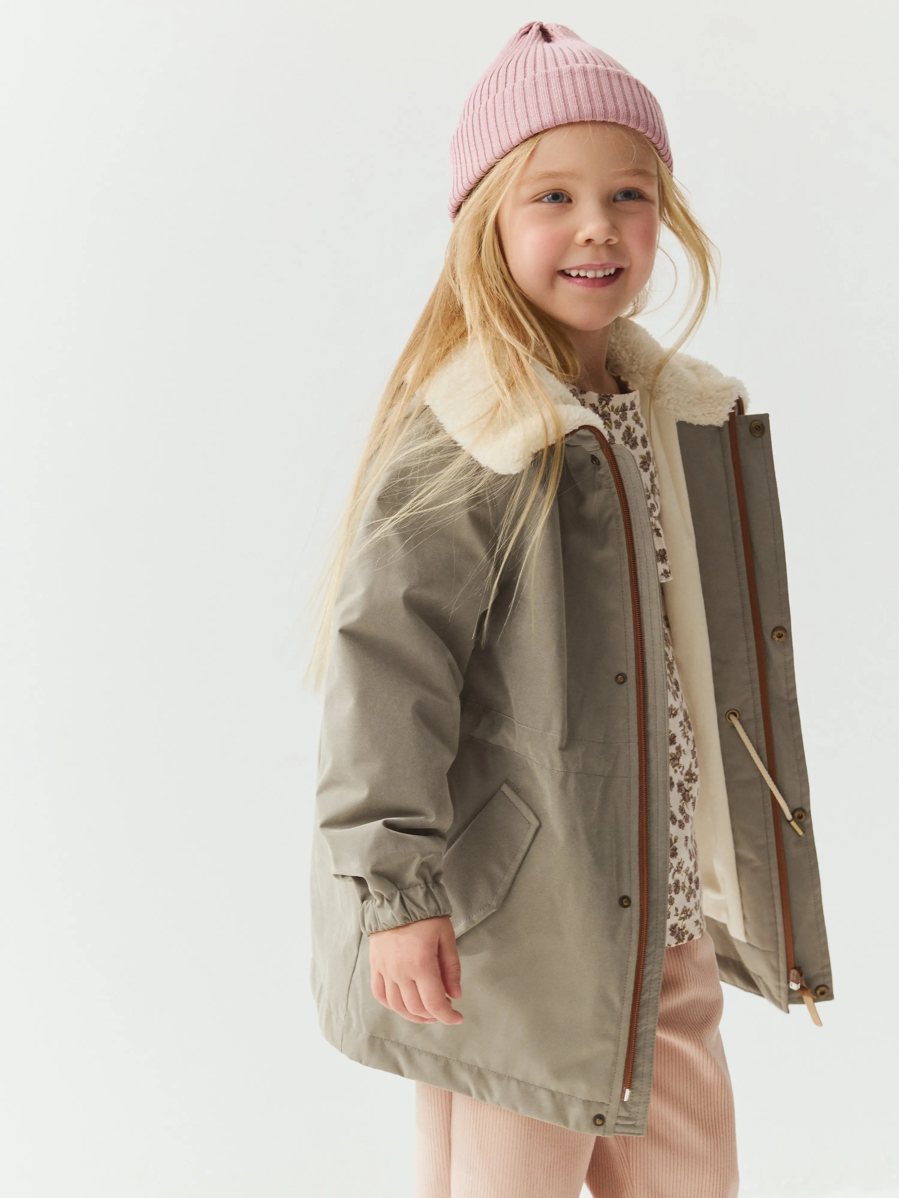 Верх - курточная ткань, мех искусств.; подкладка - велюр подкладочный, твилл; утеплитель 80 г