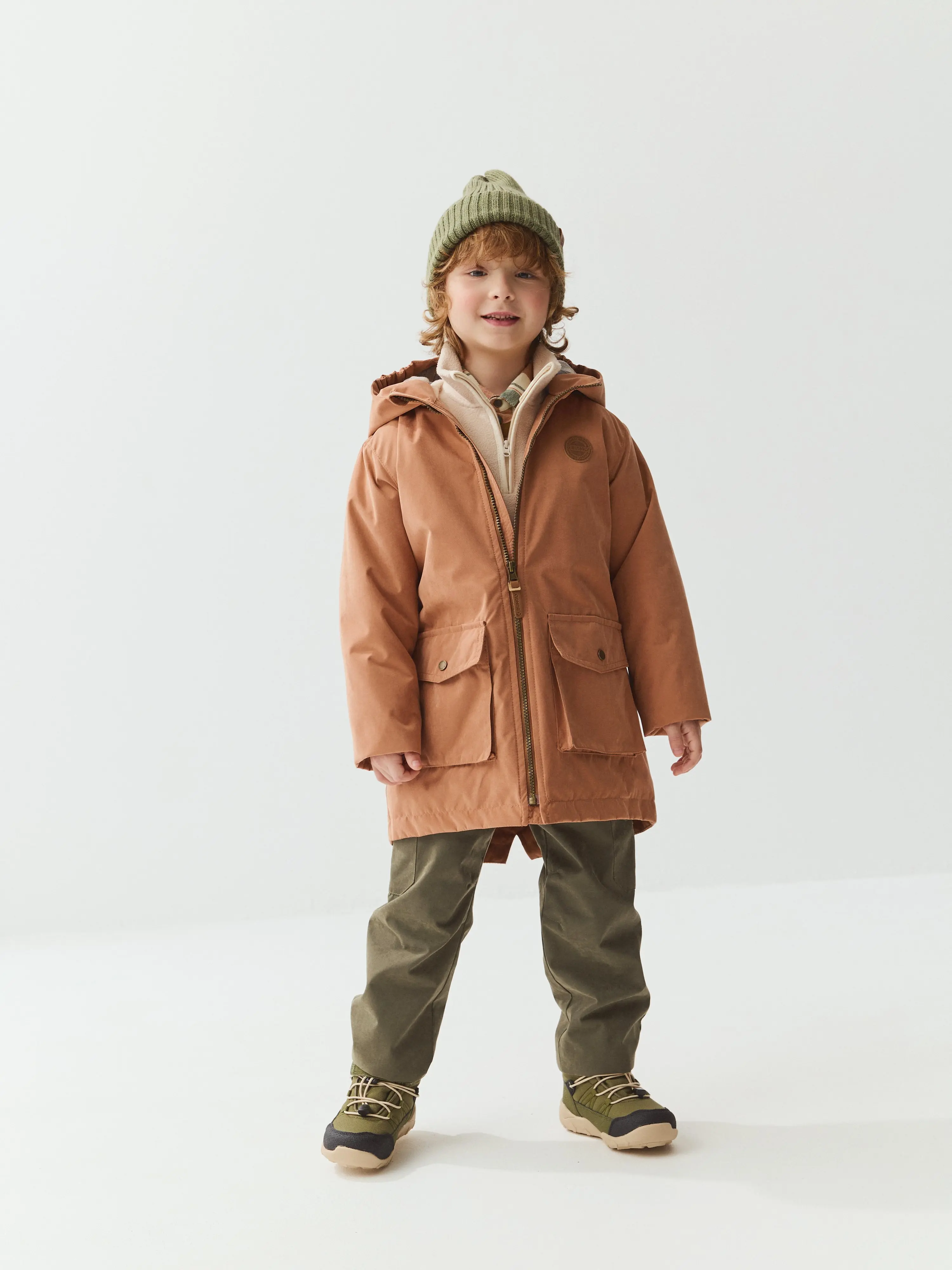 Демисезонная парка прямого силуэта из мембранной ткани с показателями 3000/3000 для защиты от влаги и ветра.