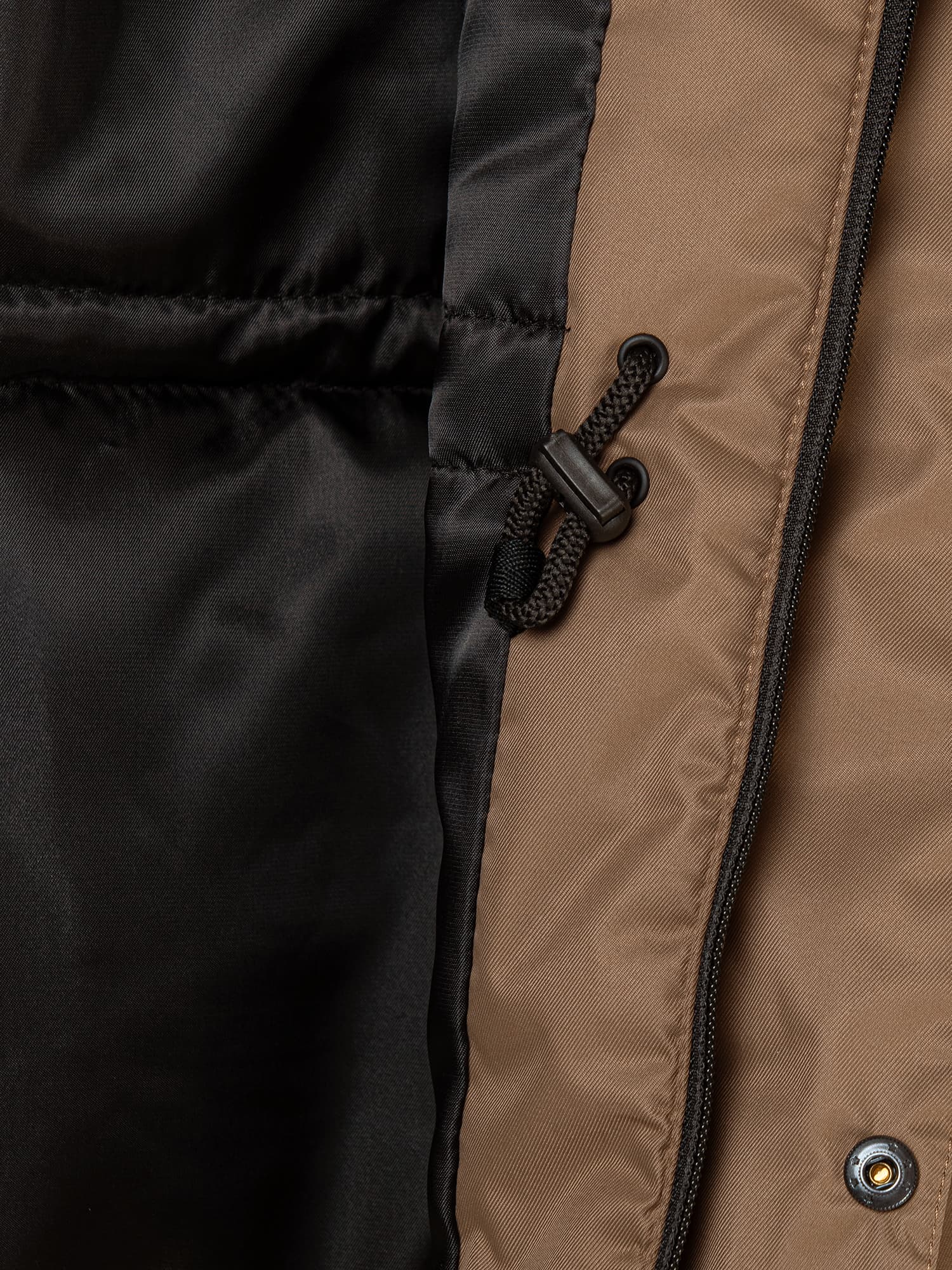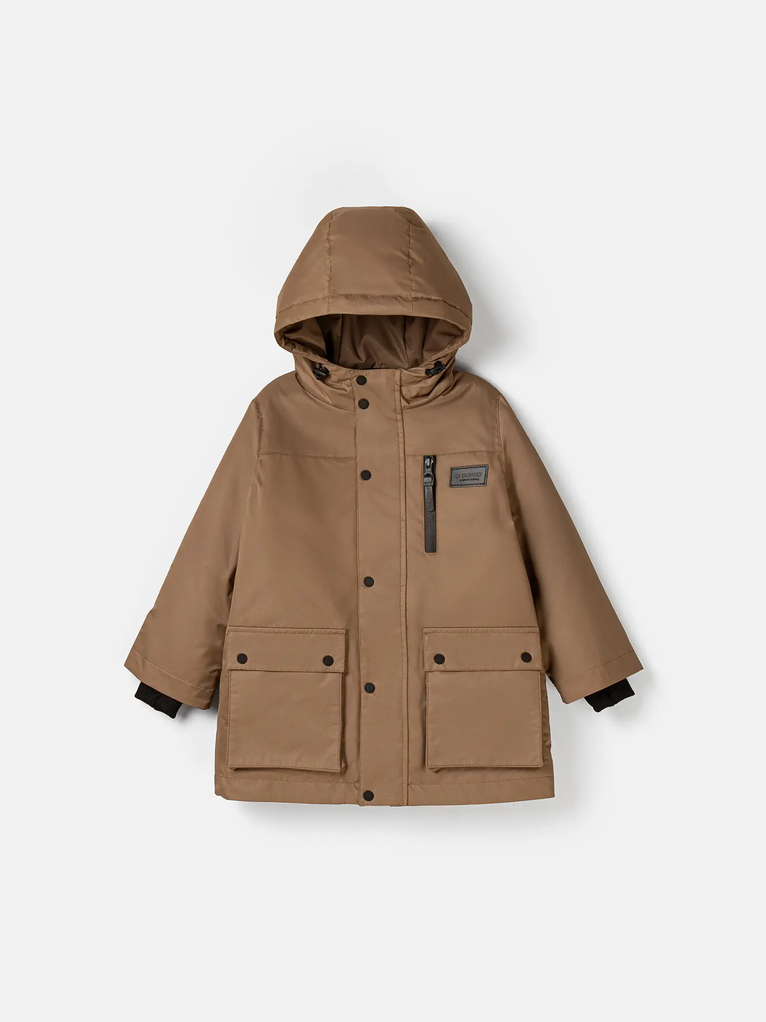 Вместительные карманы-портфели с клапанами на кнопках и один прорезной карман на молнии в верхней части парки.