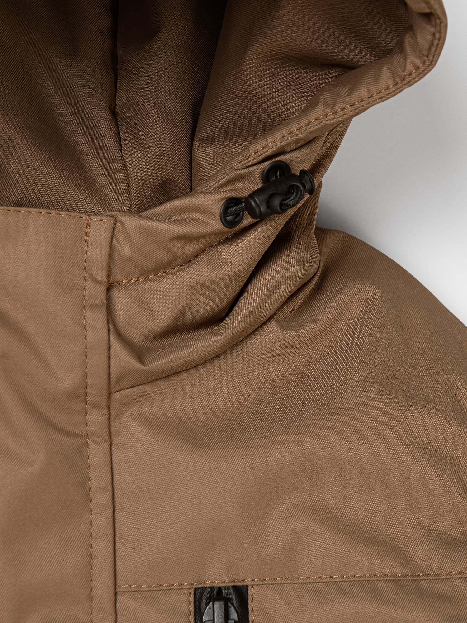Капюшон несъемный с утяжкой на резинку с фиксатором.