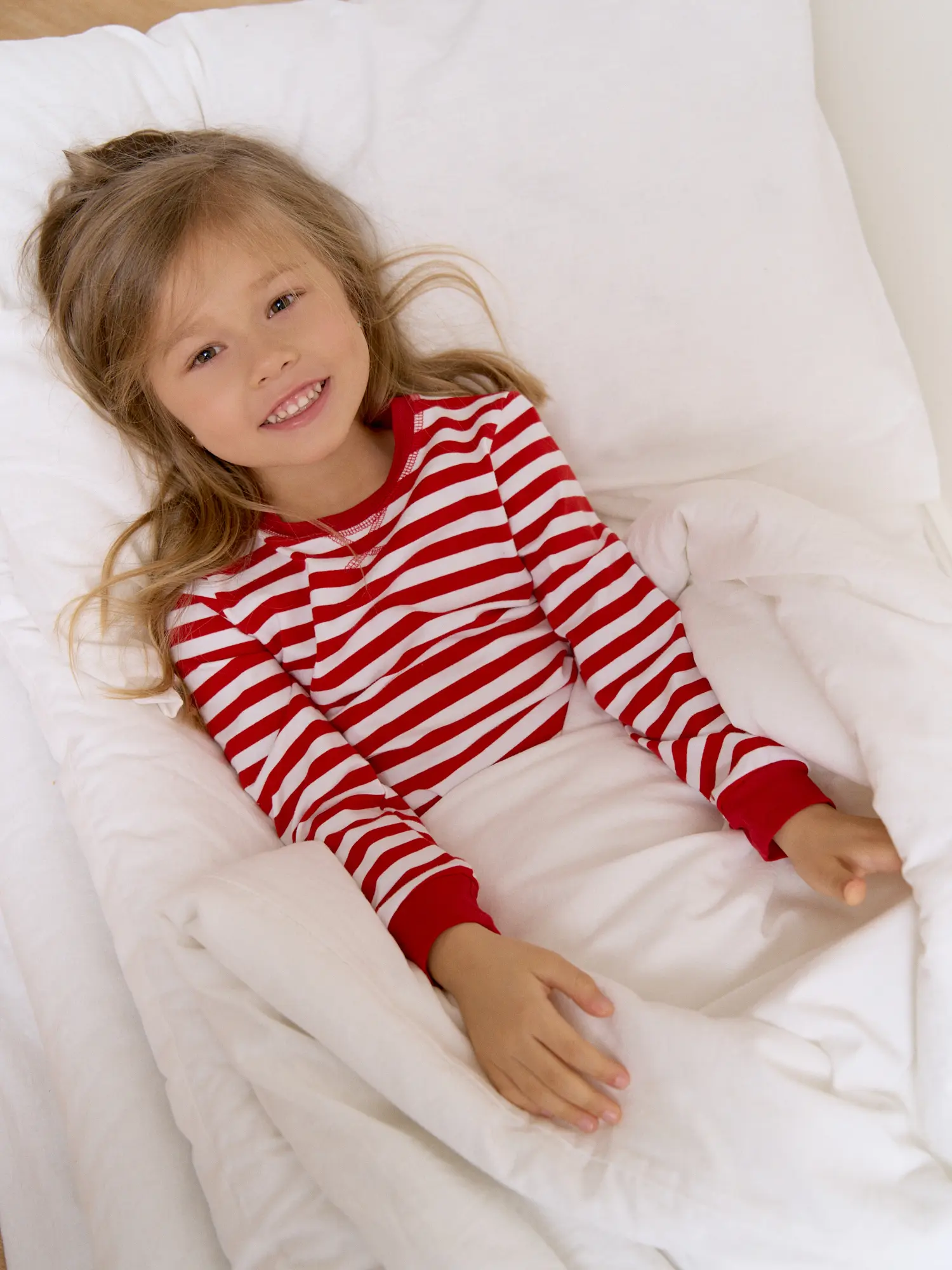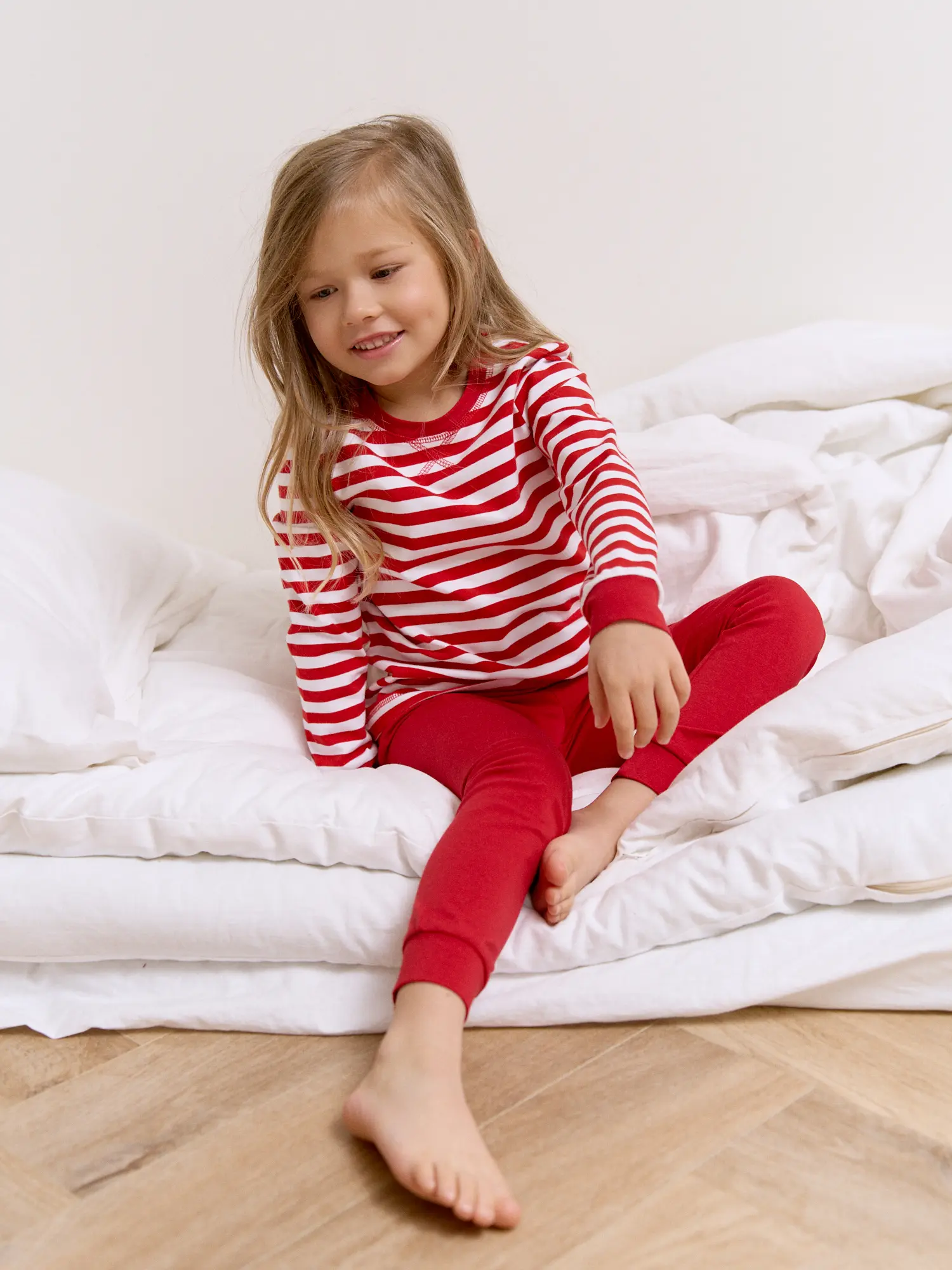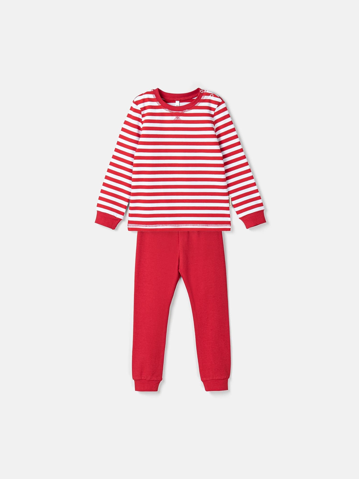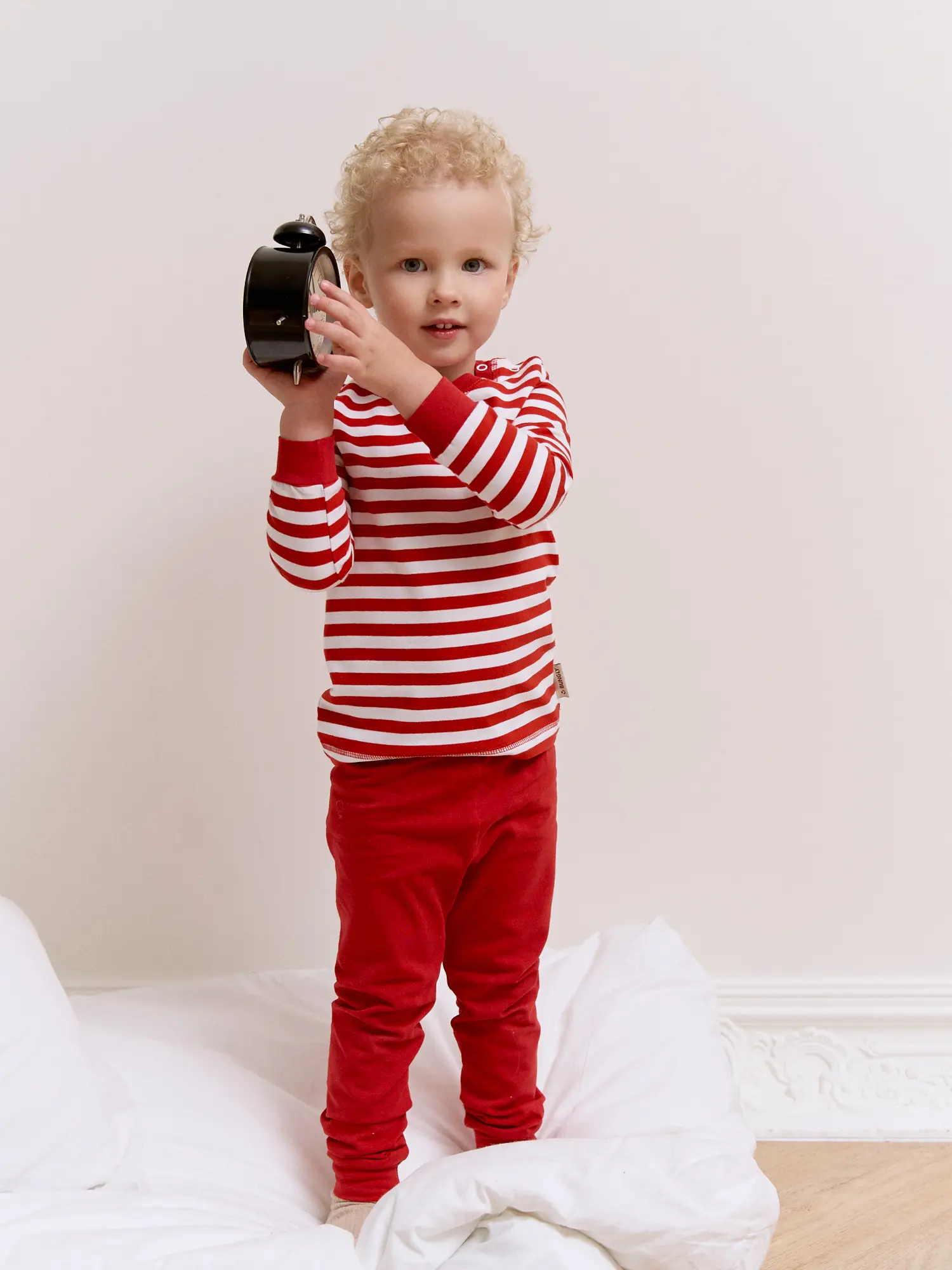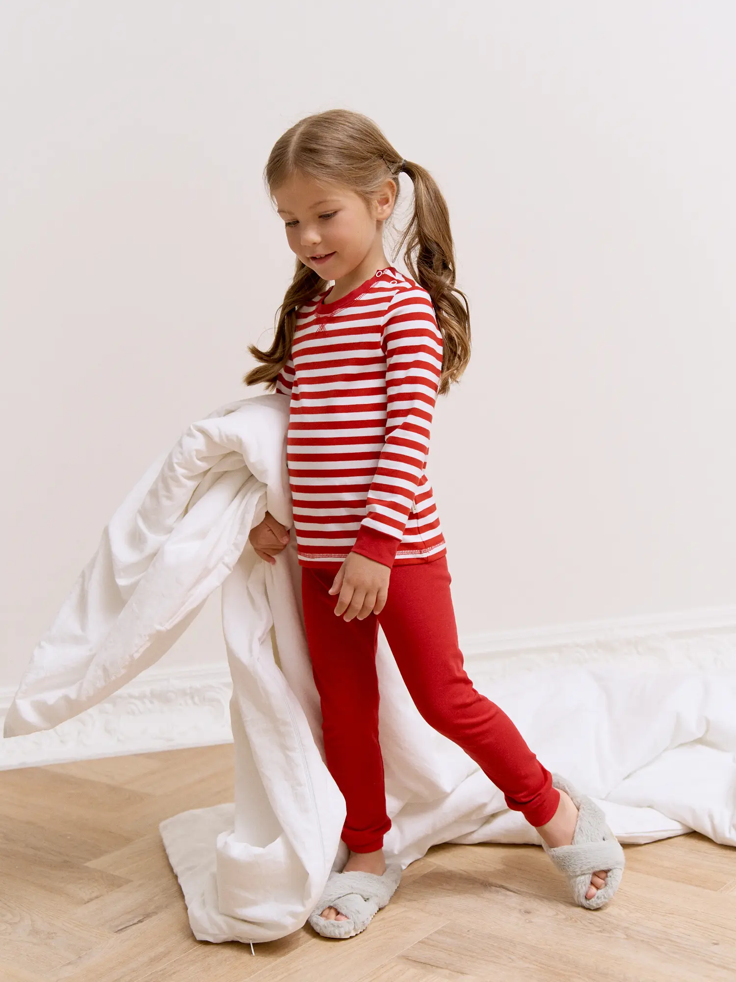 Полосатый лонгслив прямого силуэта и однотонные леггинсы не сковывают движений и комфортны для сна. На лонгсливе кнопочки для удобства одевания в размерах